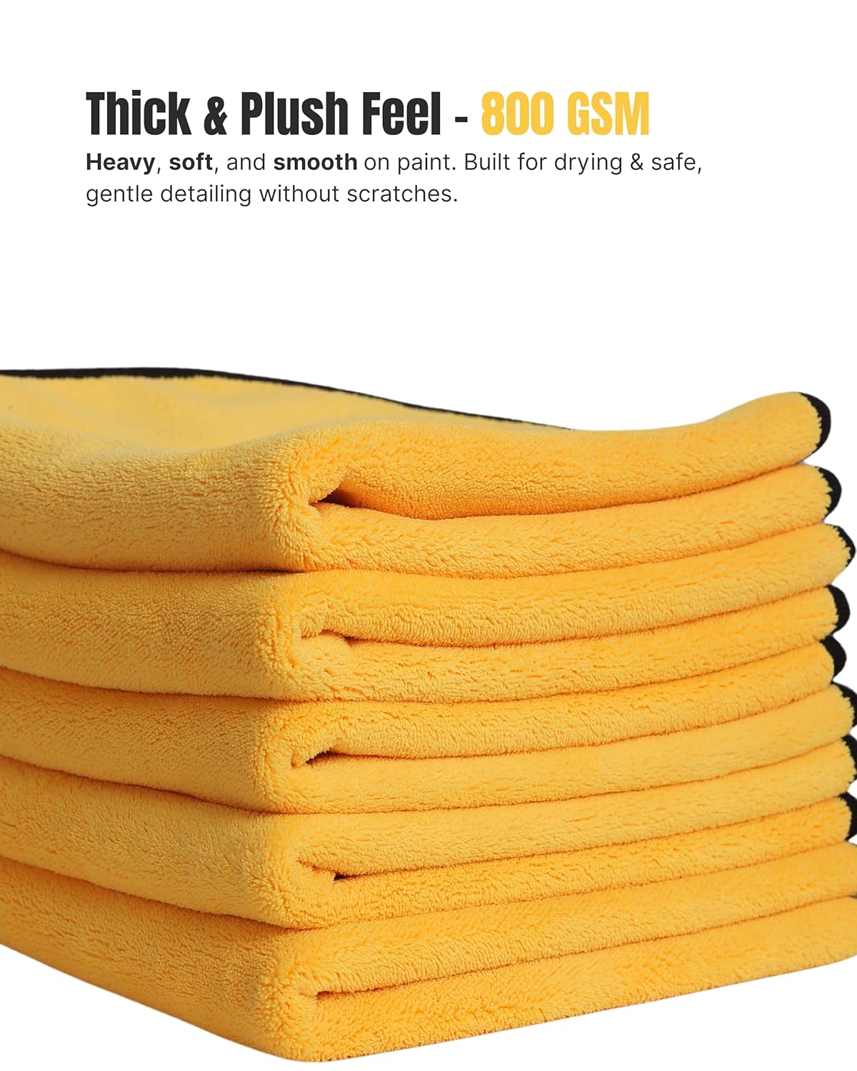 Com uma trama ultra-absorvente, esta toalha de microfibra absorve água rapidamente, acelerando o processo de secagem. Sua construção robusta e espessa, com 800 GSM, permite que você enfrente grandes trabalhos de secagem com facilidade. As bordas costuradas suavemente protegem superfícies delicadas contra arranhões e marcas, tornando-a segura para uso em pintura, cromados e vidros.
