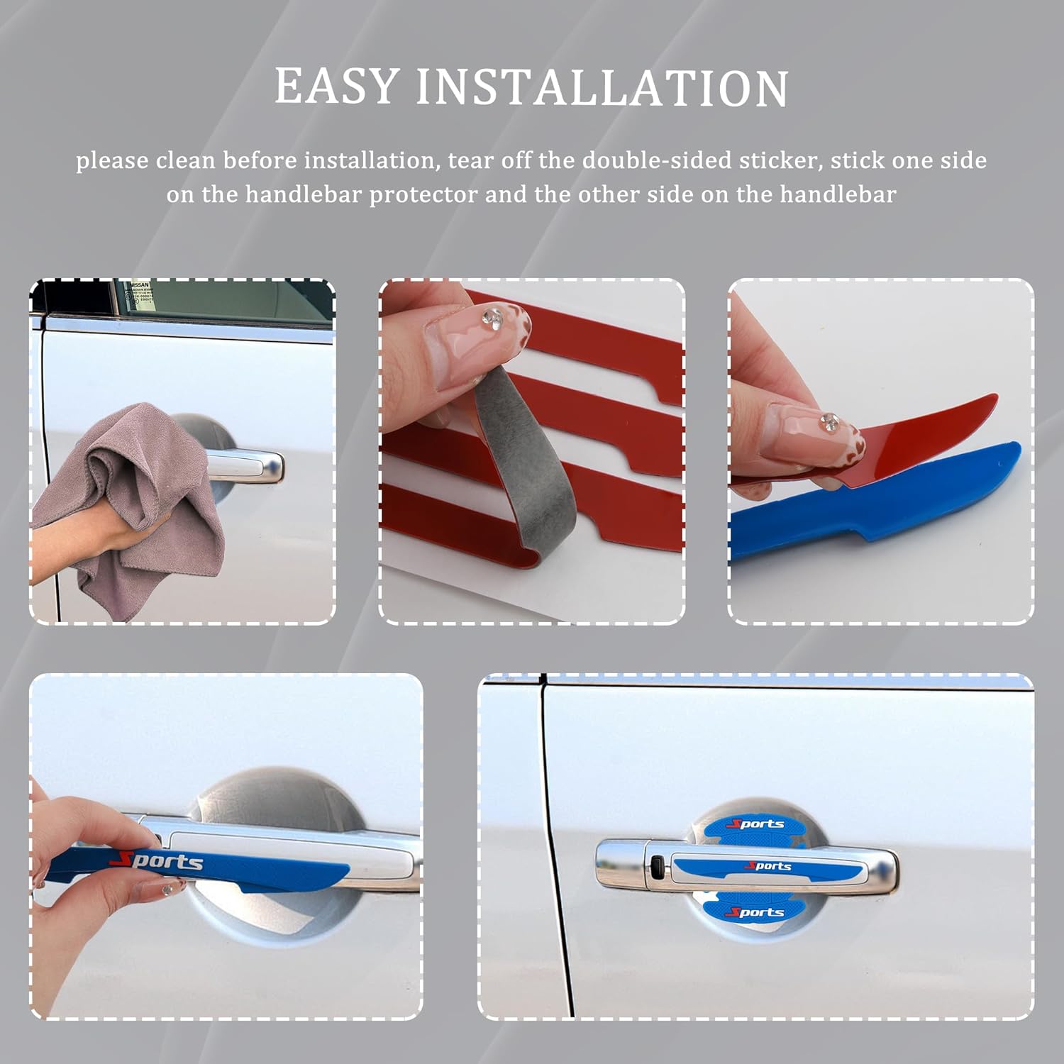 Os protetores de manopla de porta são projetados para defender efetivamente a parte externa da manopla, reduzindo os arranhões causados pela abertura e fechamento frequente das portas. Além disso, eles cobrem pequenos arranhões já existentes, fazendo com que o carro mantenha uma aparência mais bonita e bem cuidada.