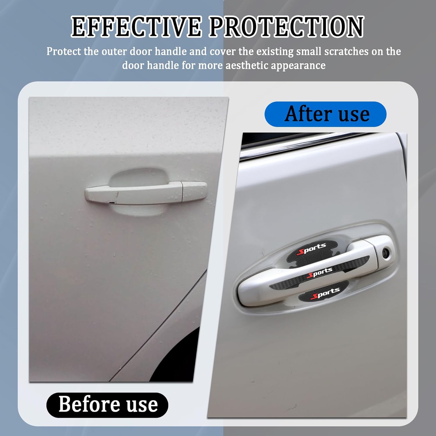Os protetores de manopla de porta são projetados para defender efetivamente a parte externa da manopla, reduzindo os arranhões causados pela abertura e fechamento frequente das portas. Além disso, eles cobrem pequenos arranhões já existentes, fazendo com que o carro mantenha uma aparência mais bonita e bem cuidada.