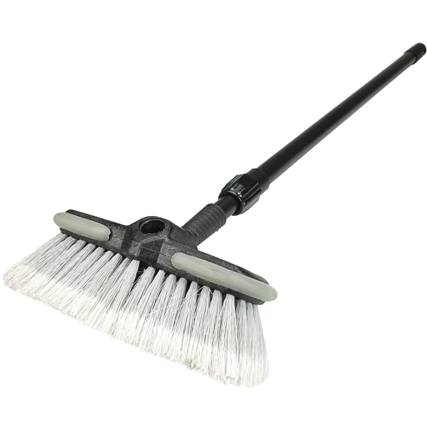 I bought this brush to wash the vinyl fence at my house. I am in my late 70’s and the less bending that I do, the happier my back is. I am able to easily use this brush to apply the chemicals needed to clean off the fence sections. The soft bristles do a great job breaking up the mold and algae. They also do not scratch the surface of the fence. The adjustable handle helps to adapt the length to minimize my bending over when working.