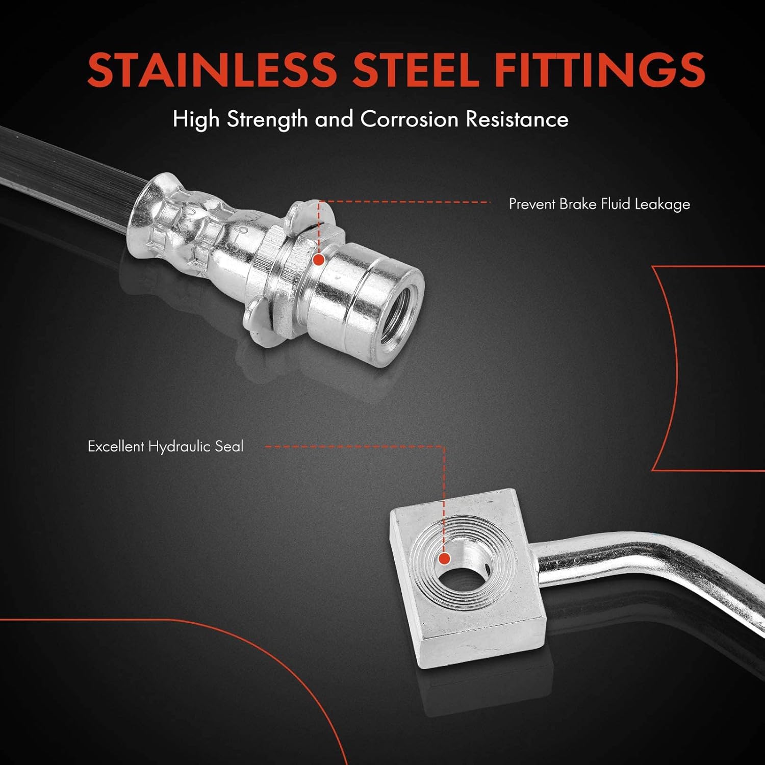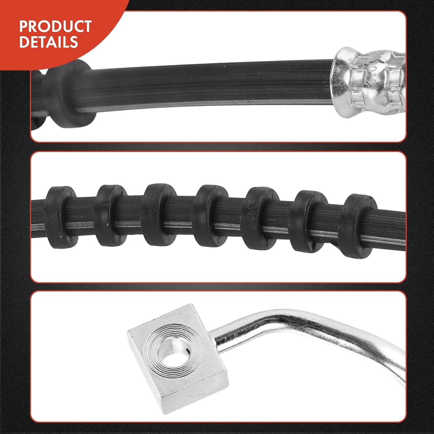 - [Qualidade Superior]: As Mangueiras Hidráulicas de Freio A-Premium são fabricadas com borracha EPDM e conexões de aço inoxidável, atendendo aos padrões de certificação DOT, Normas de Segurança de Veículos Motorizados Federais (FMVSS 106) e Padrões SAE J1401. O artesanato e os materiais de alta qualidade garantem durabilidade e desempenho excepcionais, melhorando todo o sistema de frenagem.