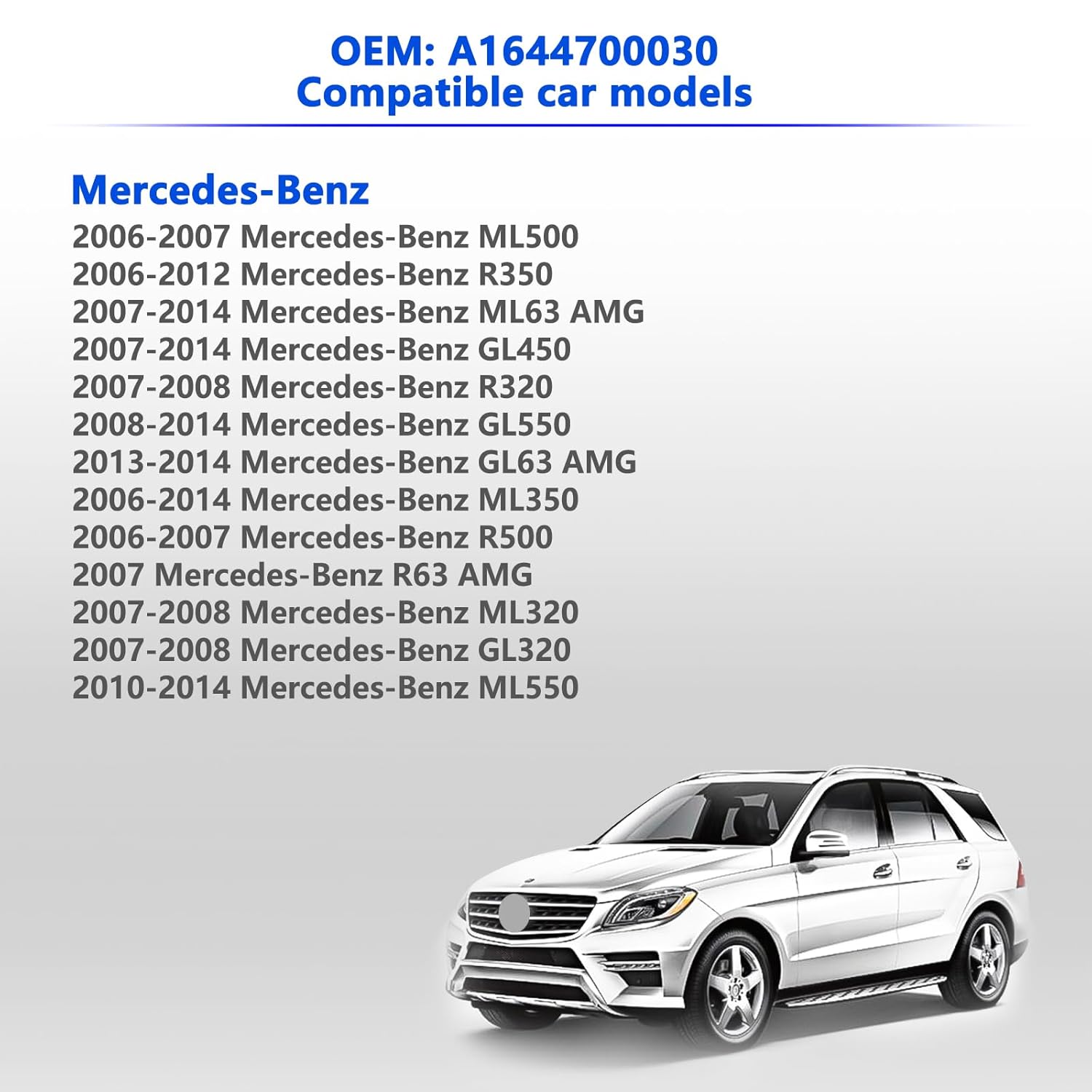 - 🚘 Compatível com Veículos Mercedes-Benz: Este produto é compatível com uma ampla gama de modelos, incluindo: 2006-2007 Mercedes-Benz ML500, 2006-2012 Mercedes-Benz R350, 2007-2014 Mercedes-Benz ML63 AMG, 2007-2014 Mercedes-Benz GL450, 2007-2008 Mercedes-Benz R320, 2008-2014 Mercedes-Benz GL550, 2013-2014 Mercedes-Benz GL63 AMG, 2006-2014 Mercedes-Benz ML350, 2006-2007 Mercedes-Benz R500, 2007 Mercedes-Benz R63 AMG, 2007-2008 Mercedes-Benz ML320, 2007-2008 Mercedes-Benz GL320 e 2010-2014 Mercedes-Benz ML550.