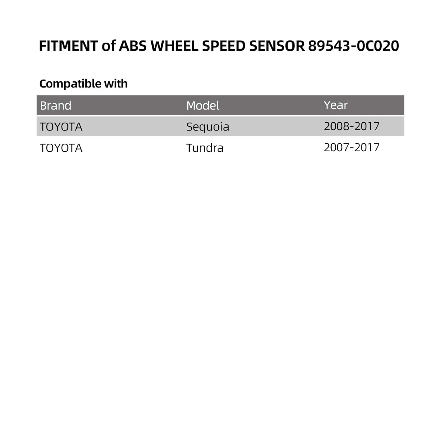 O Sensor de Velocidade da Roda ABS Frontal Esquerdo 89543-0C020 é um componente essencial para garantir a segurança e a eficiência do sistema de frenagem do seu veículo. Compatível com modelos da Toyota Sequoia de 2008 a 2017 e Toyota Tundra de 2007 a 2017, este sensor é projetado para oferecer desempenho superior e confiabilidade em todas as condições de condução.