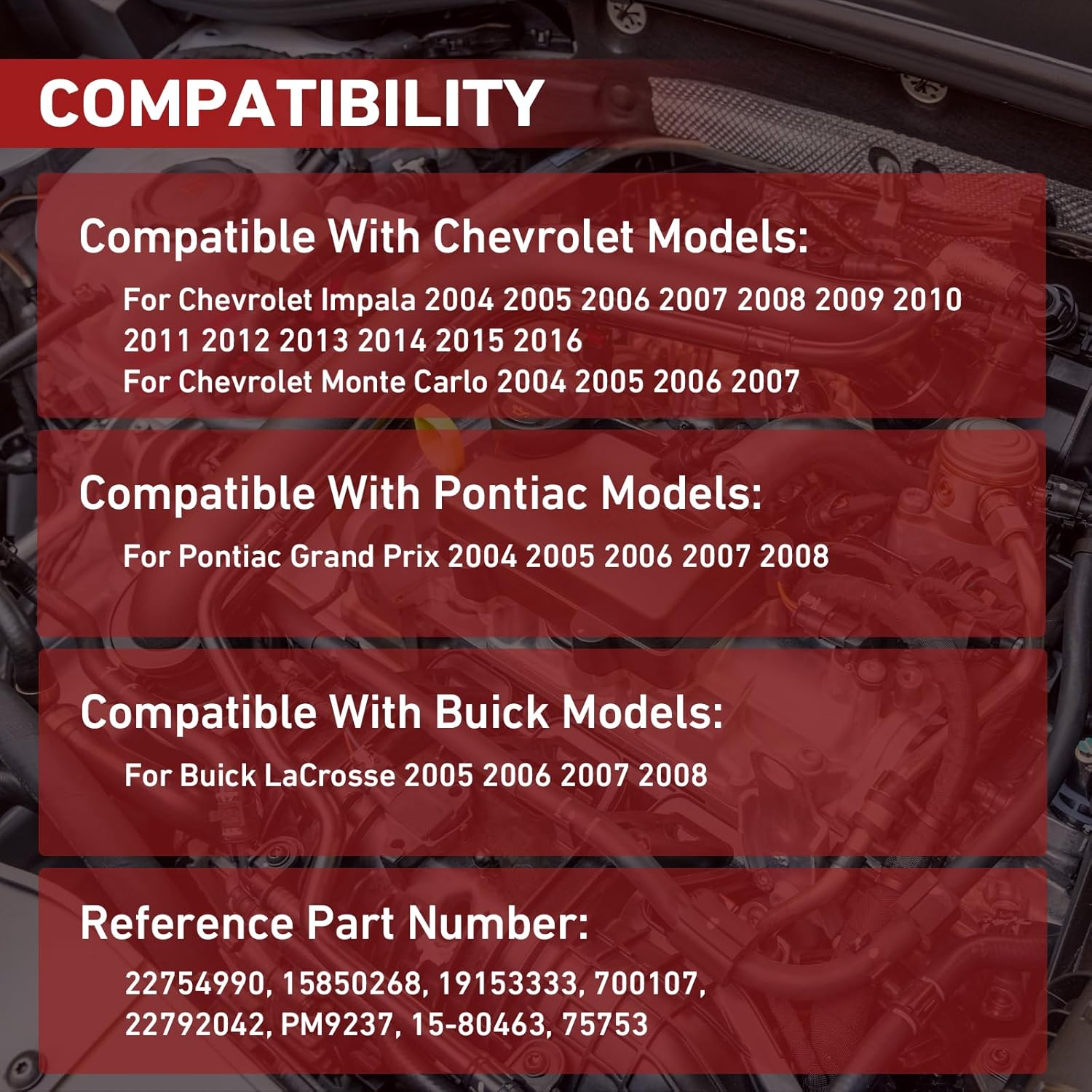 Compatibilidade: Este motor de ventilador é compatível com os modelos Chevrolet Impala de 2004 a 2016, Monte Carlo de 2004 a 2007, Pontiac Grand Prix de 2004 a 2008 e Buick LaCrosse/Allure de 2005 a 2009. Para uma lista abrangente de modelos de veículos compatíveis, consulte a descrição do produto ou utilize a ferramenta de seleção de ano/marca/modelo para confirmar a compatibilidade.
