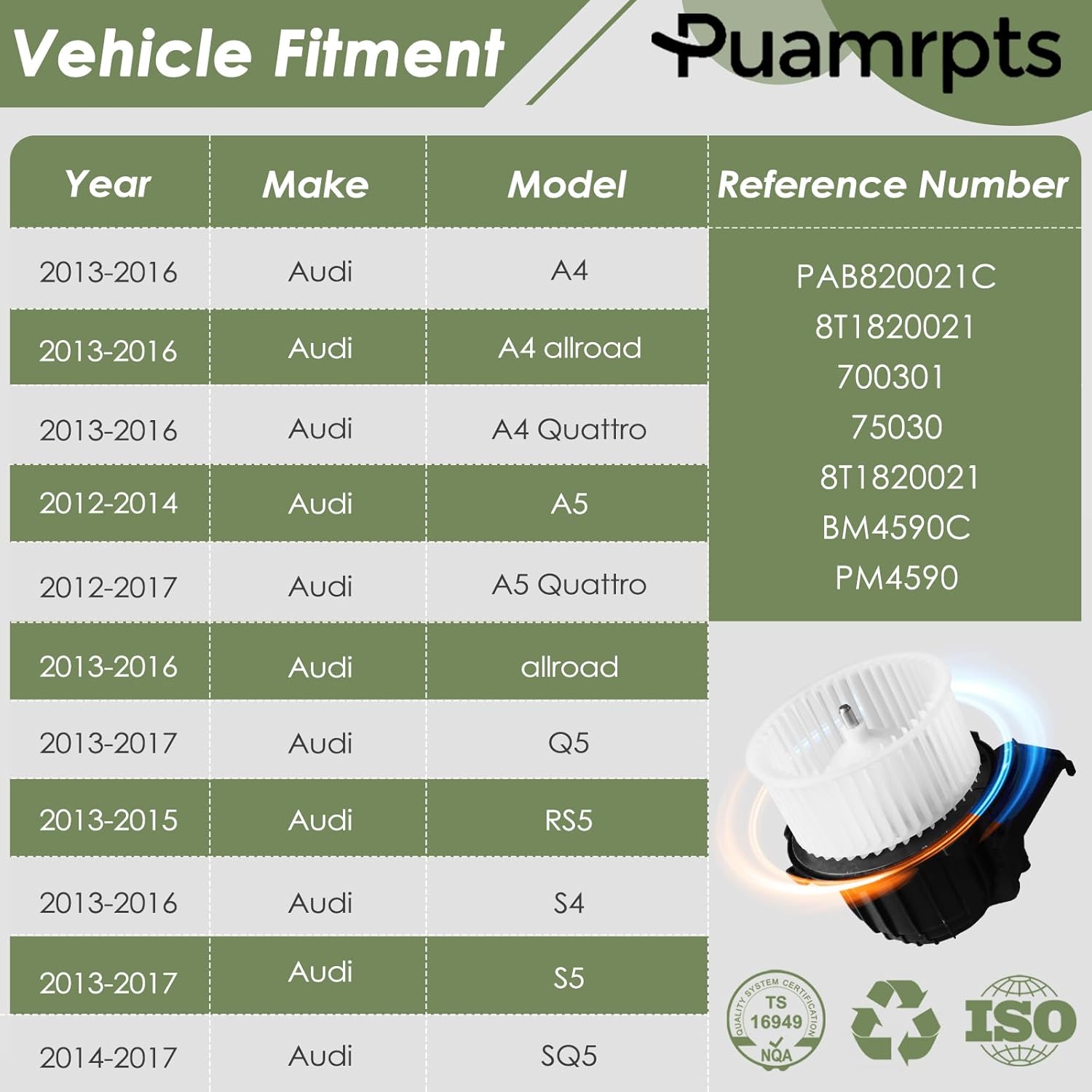 1 avaliação para Conjunto de Motor do Ventilador do Aquecedor AC – Compatível com Audi A4/A4 allroad/A4 Quattro/S4 2013-2016, A5 2012-2014, Q5 2013-2017, Substitui# 700301