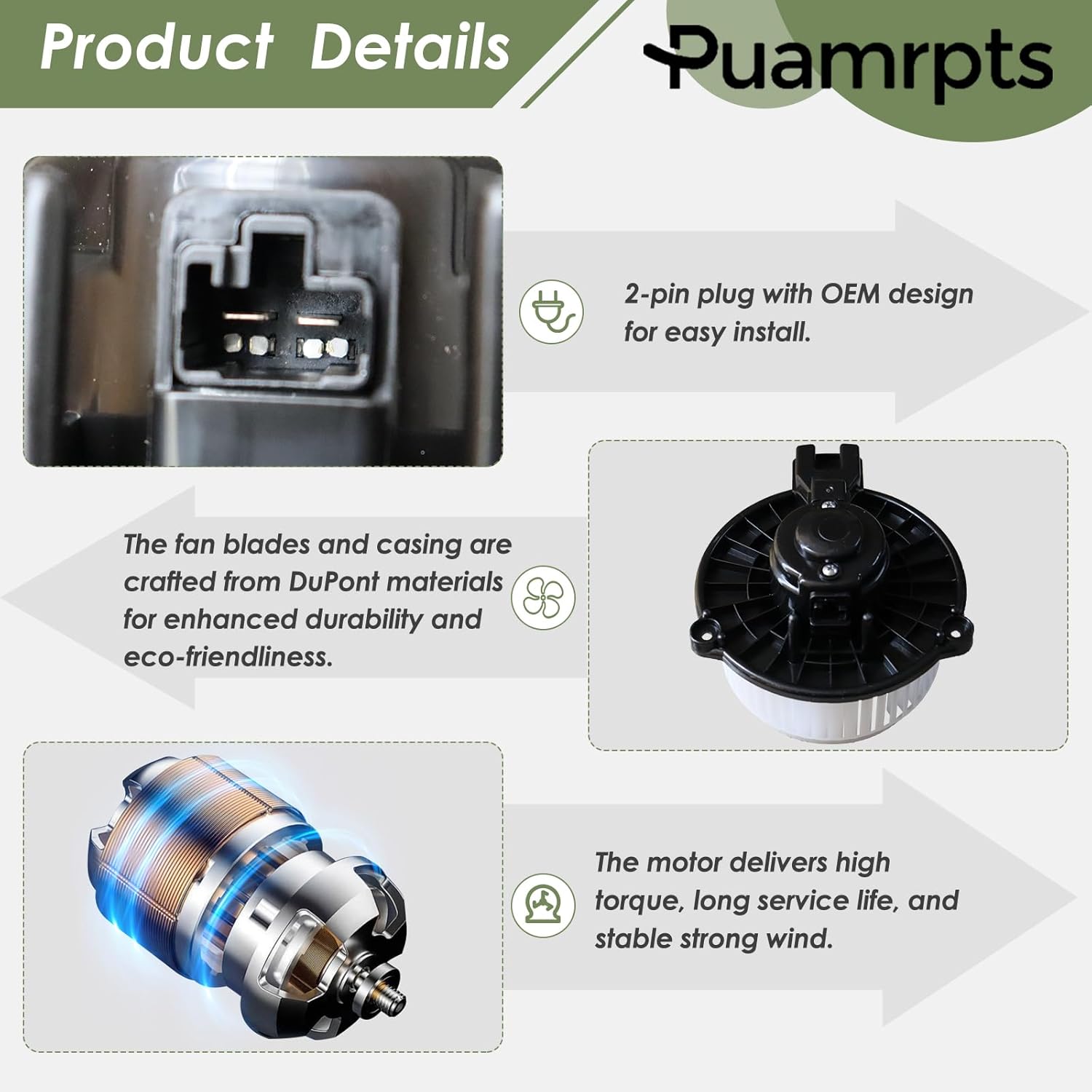 - [Fácil de instalar]: Ao simplesmente remover o motor do ventilador existente do lado do passageiro e instalar a unidade de reposição conforme as instruções de instalação, você pode desfrutar de economias substanciais em comparação com as taxas de concessionárias ao adquirir este produto.
