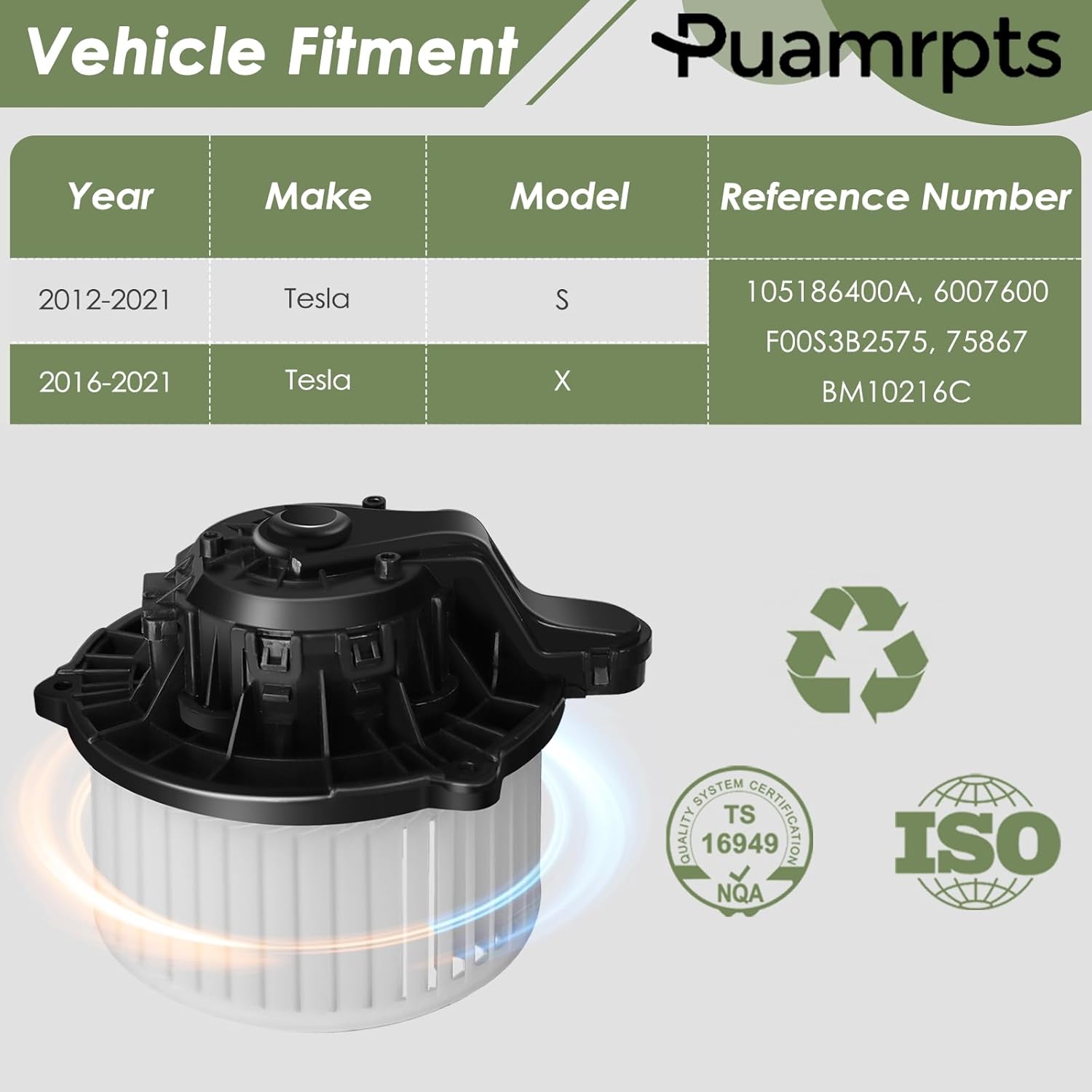 ### Descrição do Produto: Motor do Ventilador do Aquecedor de Ar – Compatível com Tesla S (2012-2021) e Tesla X (2016-2021)