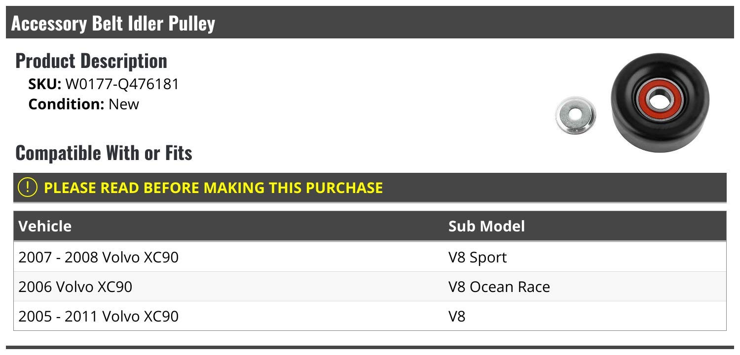 Resposta: Não, esta Polia de Tensionamento do Acessório é especificamente projetada para os modelos Volvo XC90 de 2005 a 2011, incluindo as versões V8 Sport e Ocean Race.