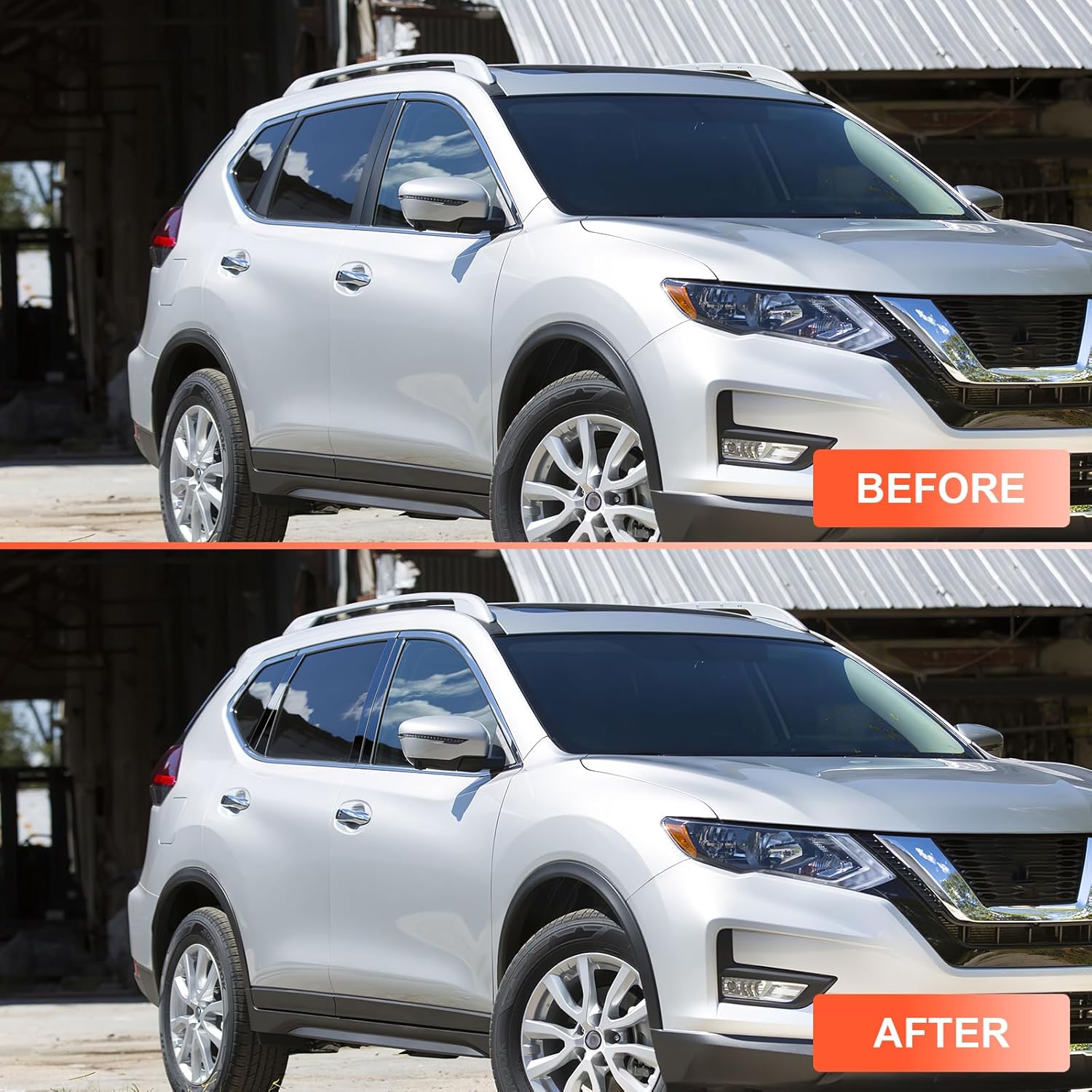 Fabricadas em aço inoxidável 304 de 26 gauge (0,025 polegadas) de espessura, essas molduras conferem ao seu Rogue uma aparência renovada e sofisticada. O processo de polimento espelhado rigoroso garante uma superfície lisa e brilhante, sem bordas afiadas, proporcionando segurança e conforto ao manuseio. A instalação é simples e rápida, utilizando fita adesiva de espuma acrílica de grau automotivo que adere firmemente por toda a vida útil do produto, sem danificar a superfície do veículo. Em apenas 15 a 20 minutos, você pode transformar o visual do seu carro.