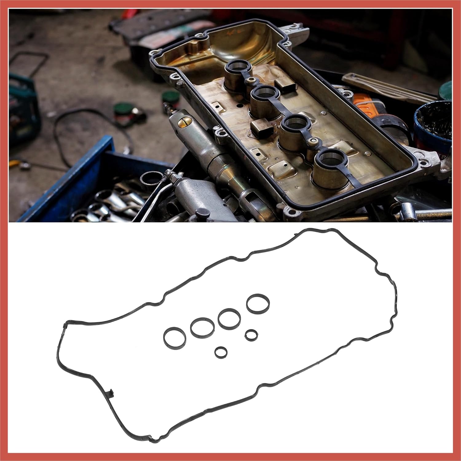 - Peças Automotivas: Função: Esta gaxeta de tampa de válvula do motor previne com precisão o vazamento de óleo do motor enquanto ele circula ao redor dos eixos de comando, balancins e válvulas.