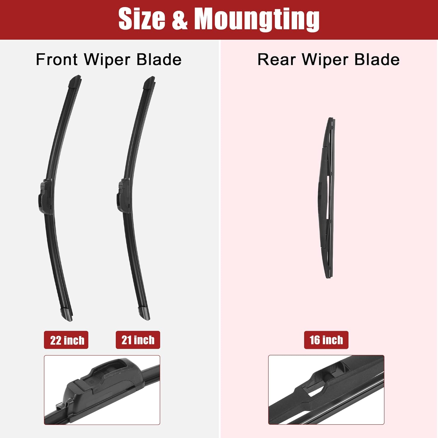 – Tamanhos: Inclui palhetas de 22″ (lado do motorista), 21″ (lado do passageiro) e 16″ (traseira).