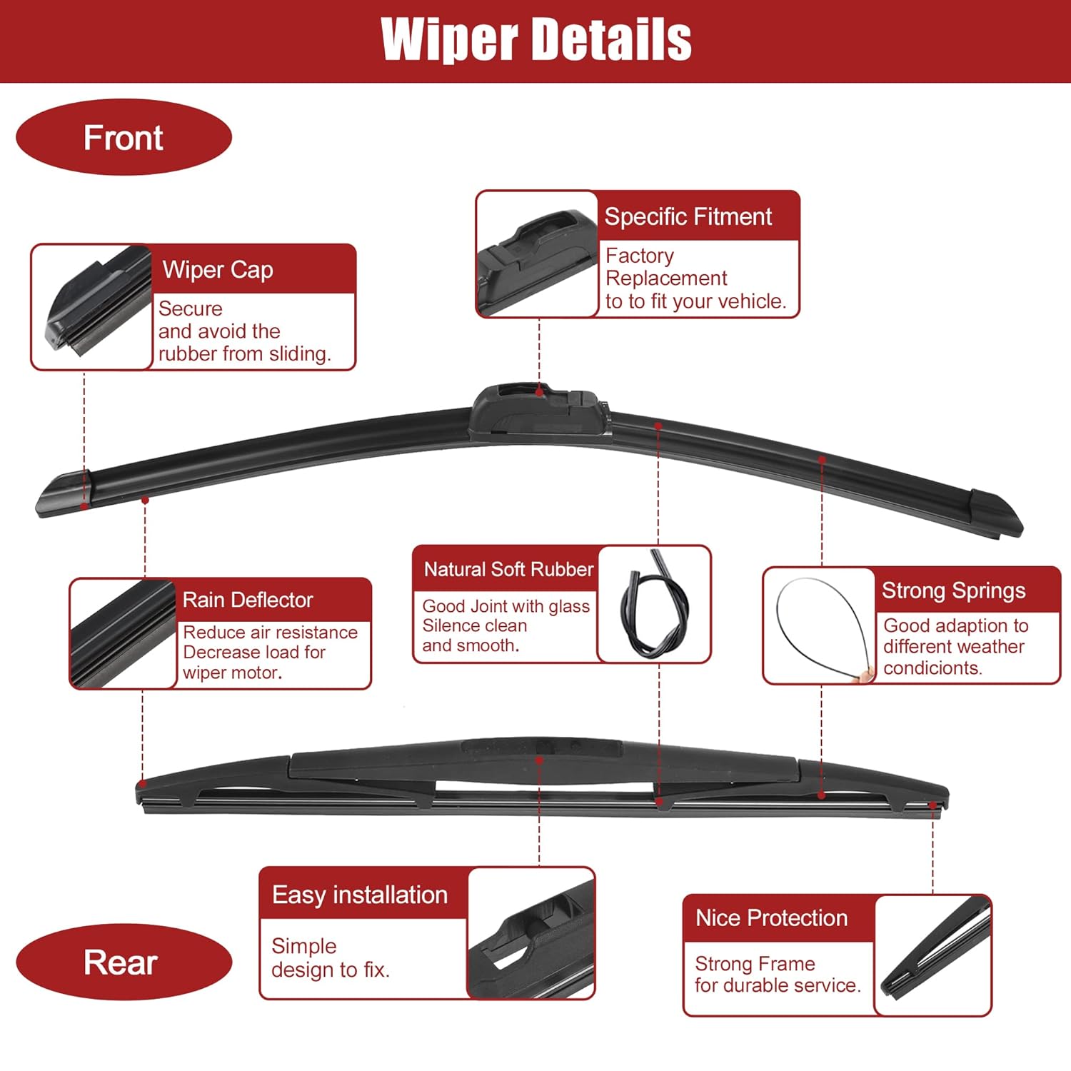 – Conteúdo da Embalagem: O pacote inclui 2 palhetas para o limpador dianteiro e 1 palheta para o limpador traseiro.