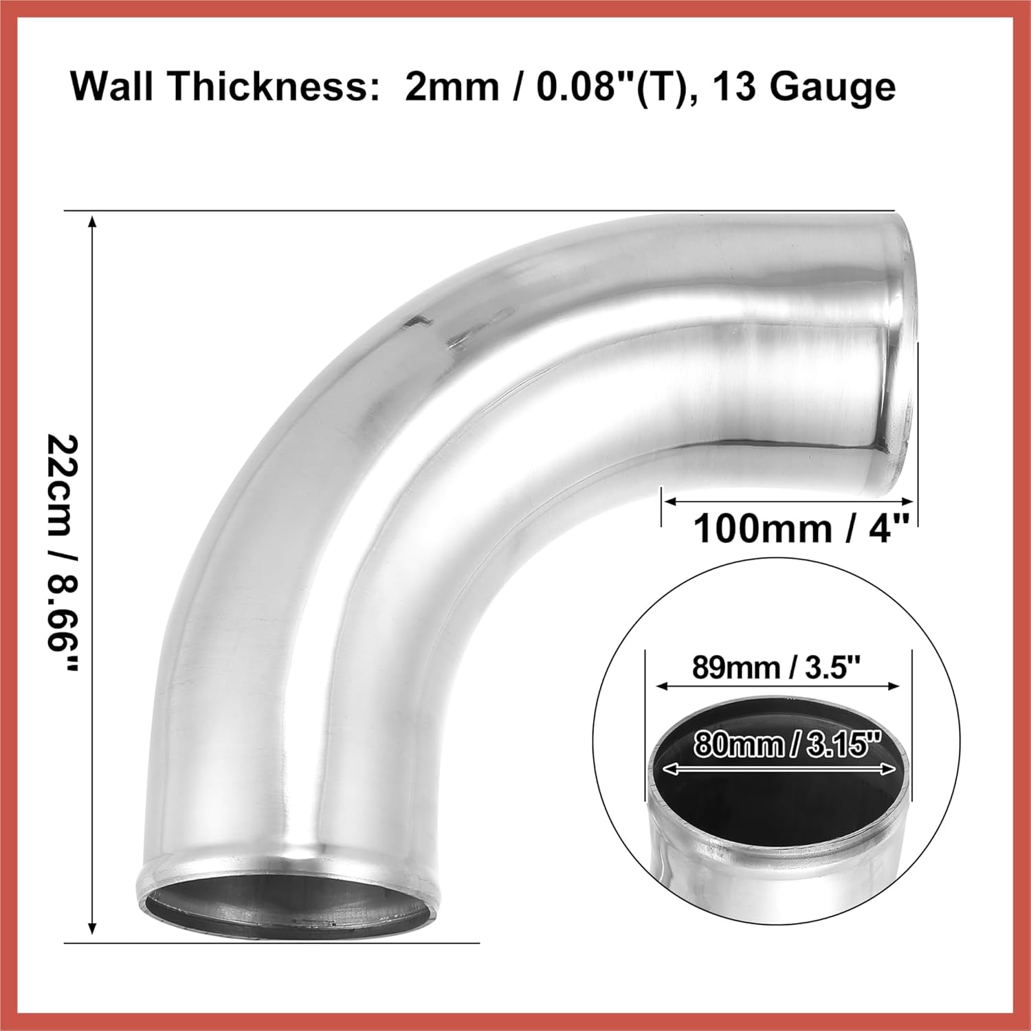 Descrição do Produto: ACROPIX OD 3.5″ 89mm Tubo de Intercooler em Alumínio com Curva de 90 Graus