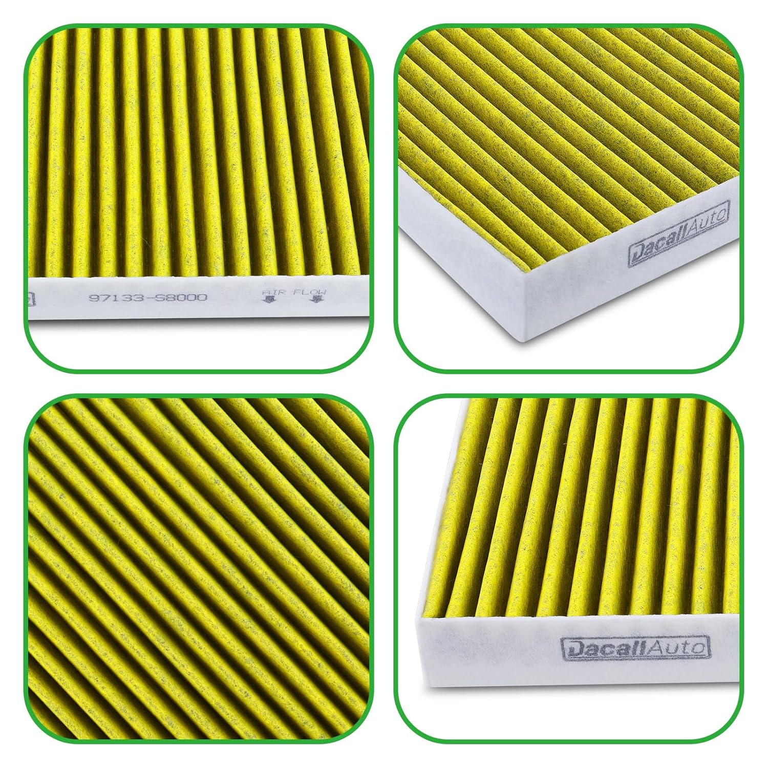 Com uma tecnologia de filtragem tripla, o filtro DacallAuto adota uma estrutura de 4 camadas que combina carvão ativado de casca de coco, microfibra e tecido HEPA. Essa combinação não apenas absorve gases nocivos e odores desagradáveis, mas também isola mais de 99% das partículas de poeira, proporcionando uma proteção abrangente e um ar fresco para todos os ocupantes do veículo.