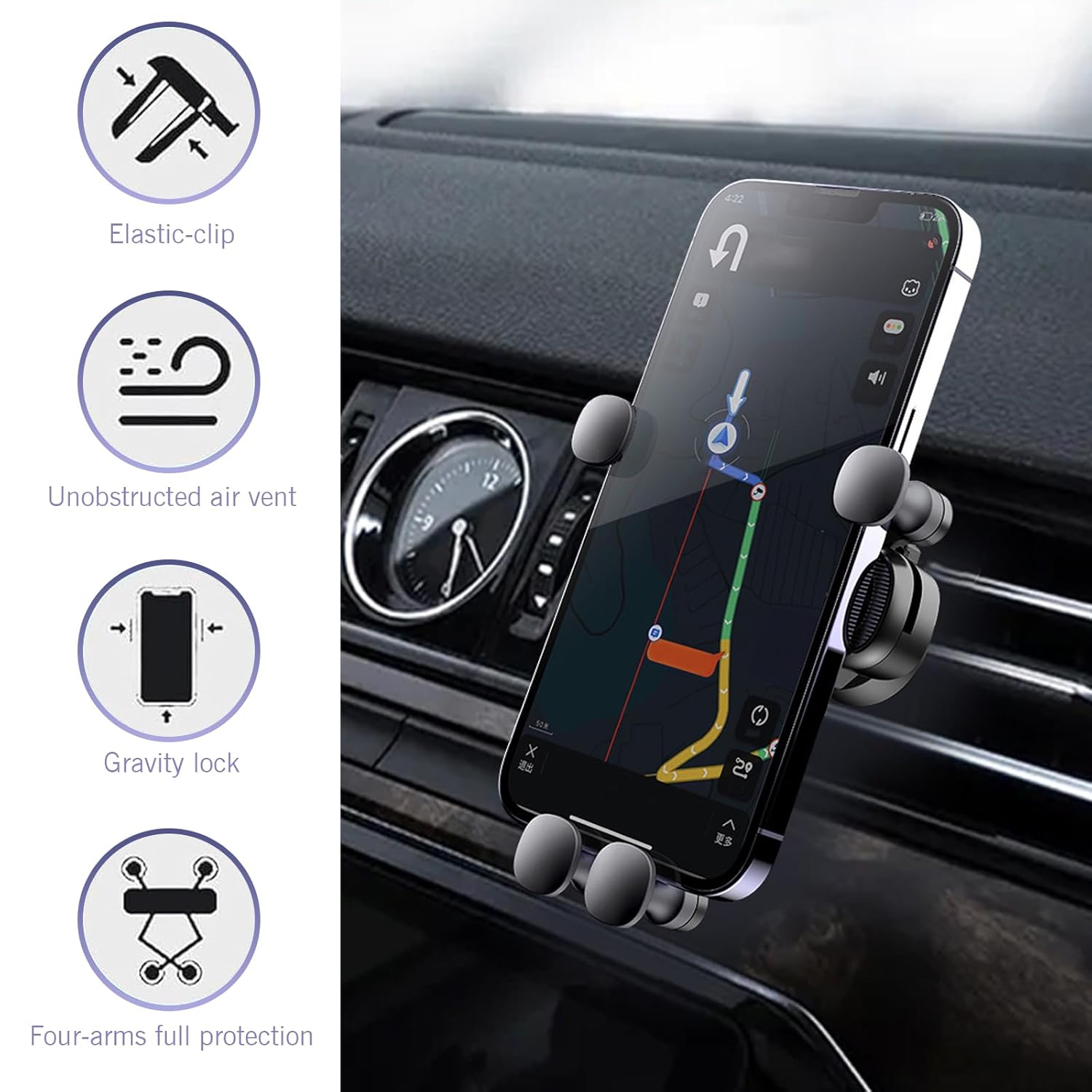 Ao colocar o celular no suporte, ele se ajusta automaticamente, garantindo uma fixação firme. O design quadrilateral oferece uma área de aderência maior, aumentando a estabilidade do dispositivo sem obstruir o uso dos botões de volume ou de desligar. Instalado na saída de ar, o suporte não compromete a visão do motorista, permitindo uma condução segura.