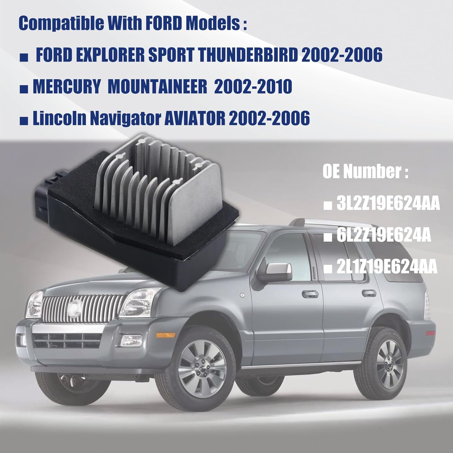 O AITKEN Blower Motor Resistor é a solução ideal para garantir o funcionamento eficiente do sistema de ventilação do seu veículo. Compatível com uma ampla gama de modelos, incluindo FORD EXPLORER (2002-2010), FORD EXPEDITION (2003-2006) e LINCOLN NAVIGATOR (2003-2006), este resistor é projetado para substituir as peças originais com números de referência 3L2Z-19E624-AA, 2L1Z-19E624-AA, entre outros.