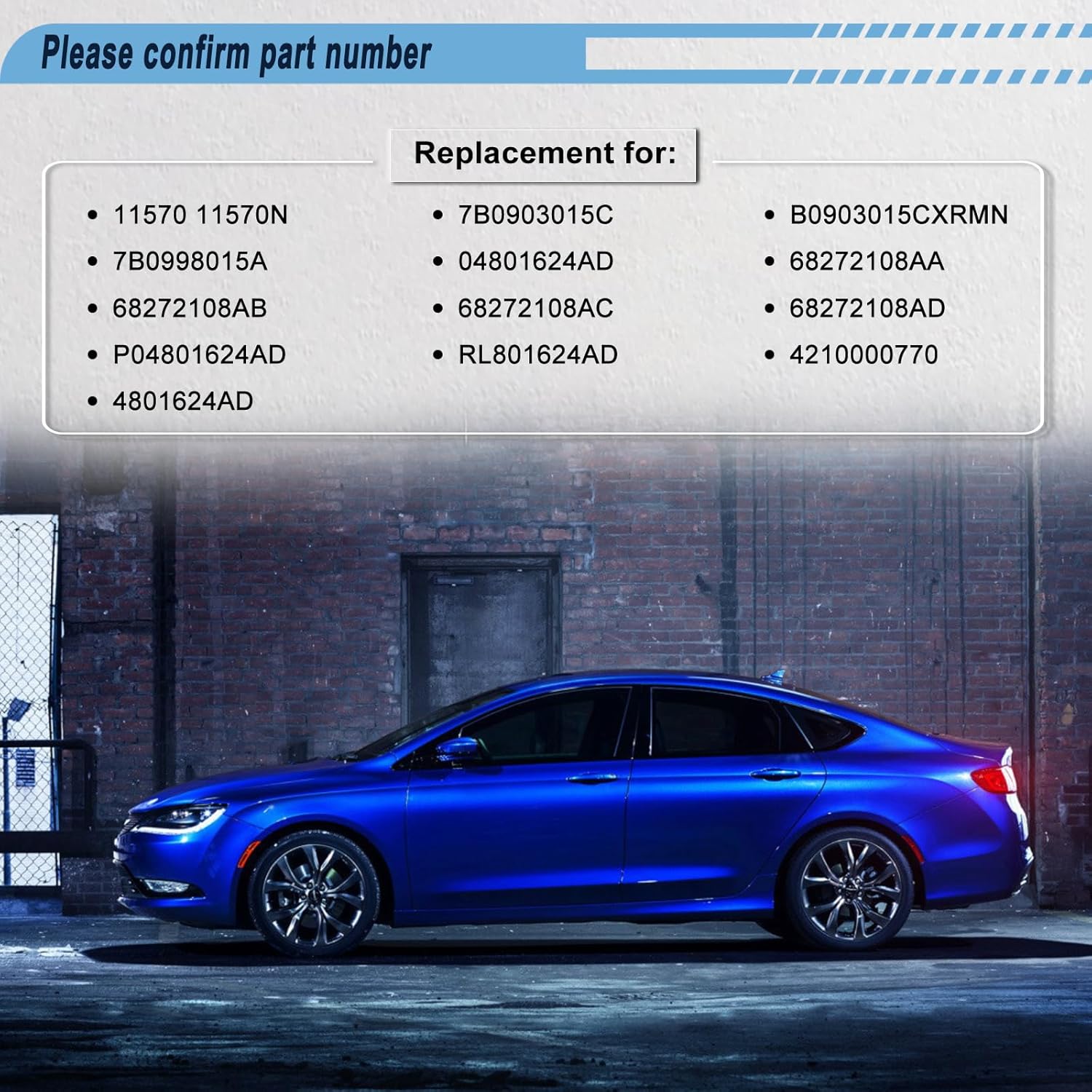 11570, 11570N, 7B0903015C, B0903015CXRMN, 7B0998015A, 04801624AD, 68272108AA, 68272108AB, 68272108AC, 68272108AD, P04801624AD, RL801624AD, 4210000770, 4801624AD. Para o tamanho e modelo específicos, consulte o site do fabricante para encontrar o número da peça do seu carro.
