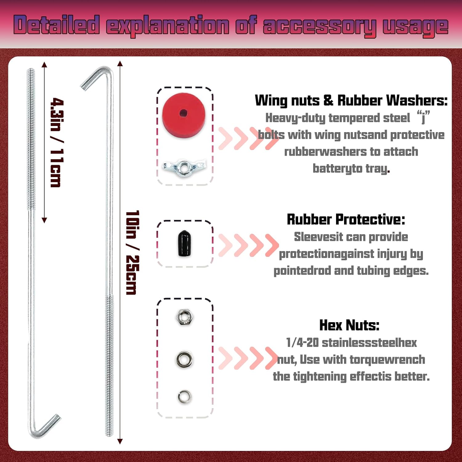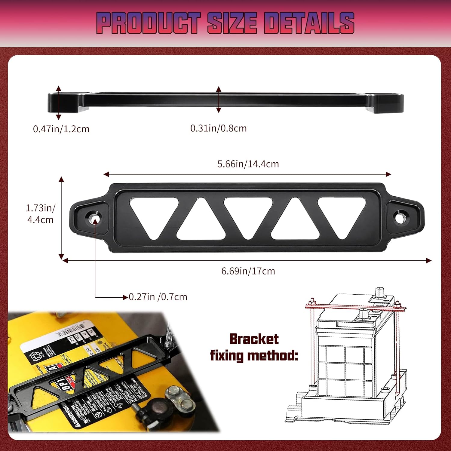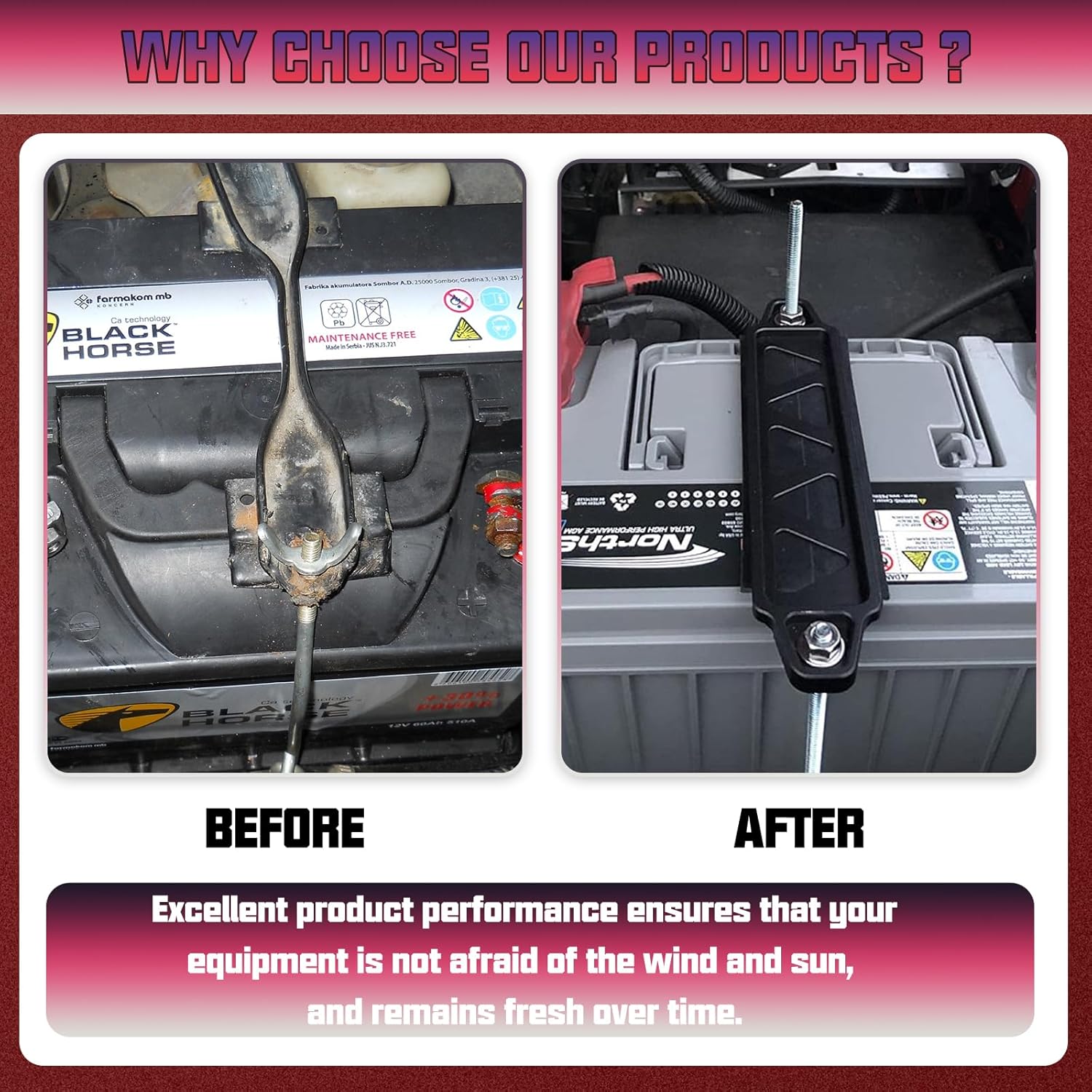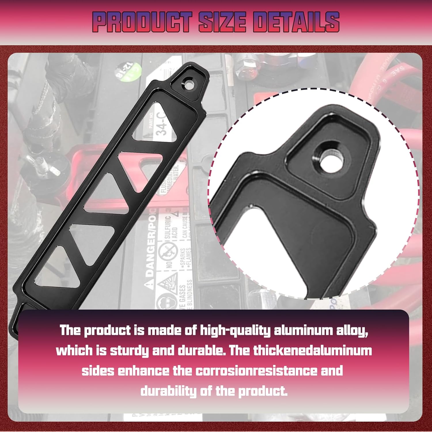Suporte de bateria em liga de alumínio, ideal para fixação segura da bateria em veículos. Com 10 polegadas, este suporte é leve, resistente à corrosão e fácil de instalar. Proporciona estabilidade e segurança, evitando movimentos indesejados da bateria durante a condução. Perfeito para quem busca durabilidade e eficiência em acessórios automotivos.