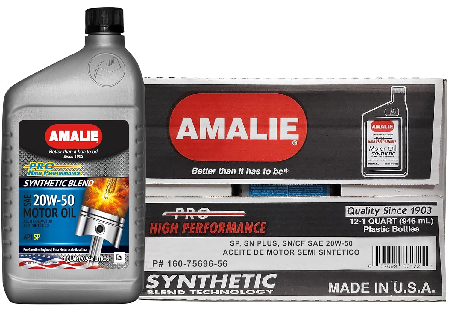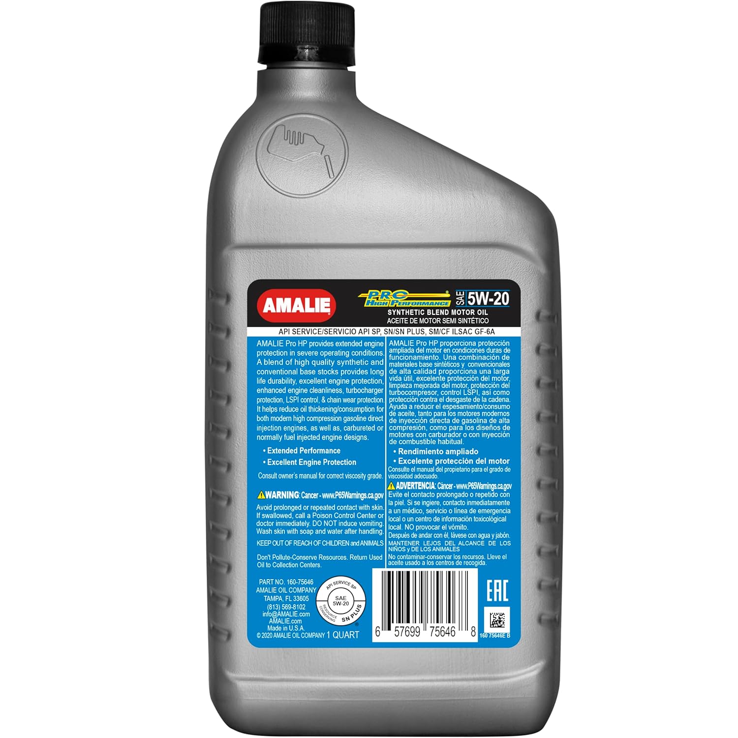 Descrição do Produto: AMALIE Pro High Performance Synthetic Blend 5W-20 Motor Oil (160-75646-56) 1 Quart Bottle, Pack of 12