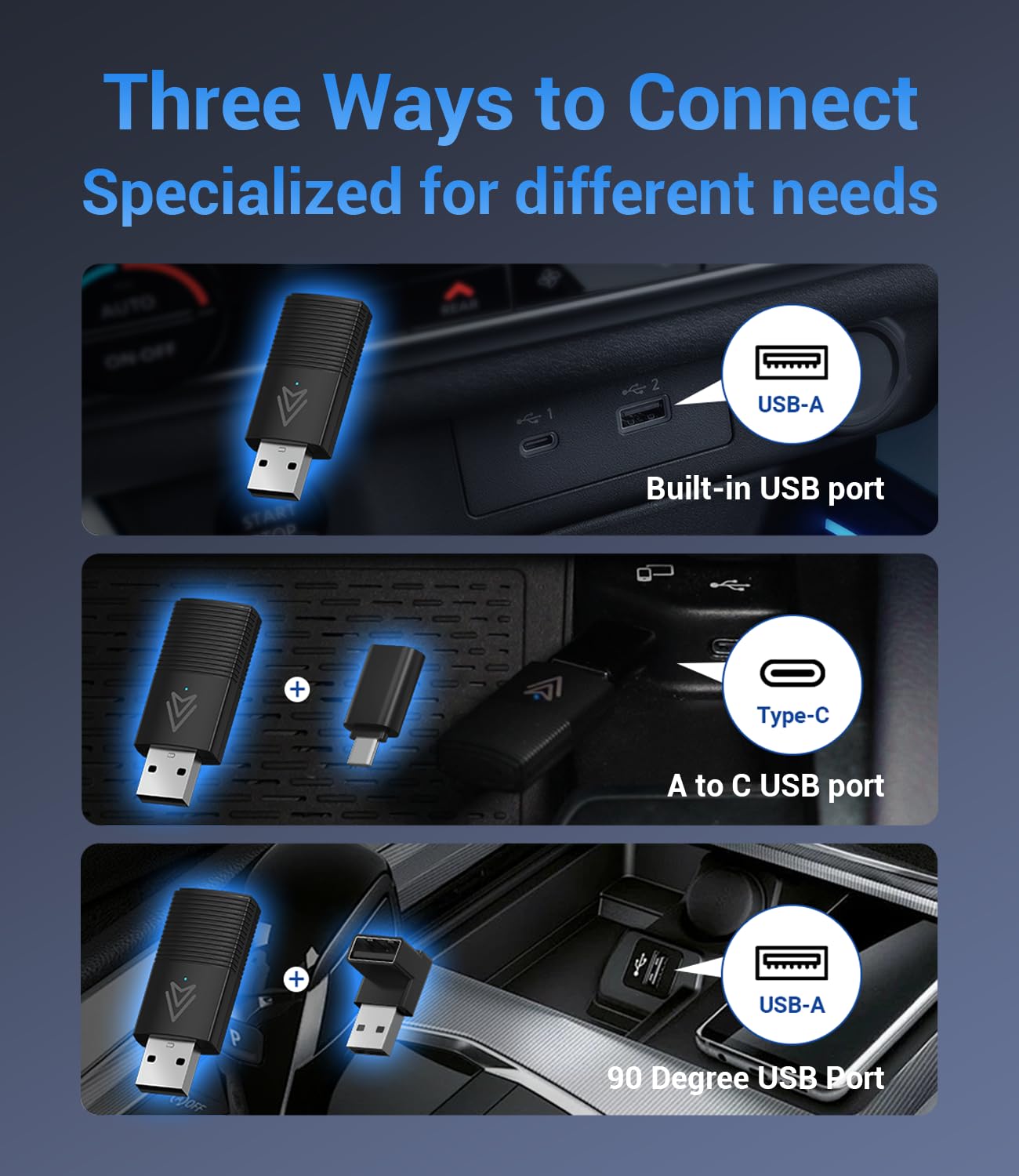 O adaptador foi projetado para ser amigável ao usuário, apresentando três métodos de conexão: USB A, USB C e uma porta em ângulo de 90 graus, atendendo a diversas necessidades de interface e modelos de veículos. E se você tiver dúvidas sobre compatibilidade ou precisar de assistência, nossa equipe de suporte técnico está sempre disponível para ajudar.