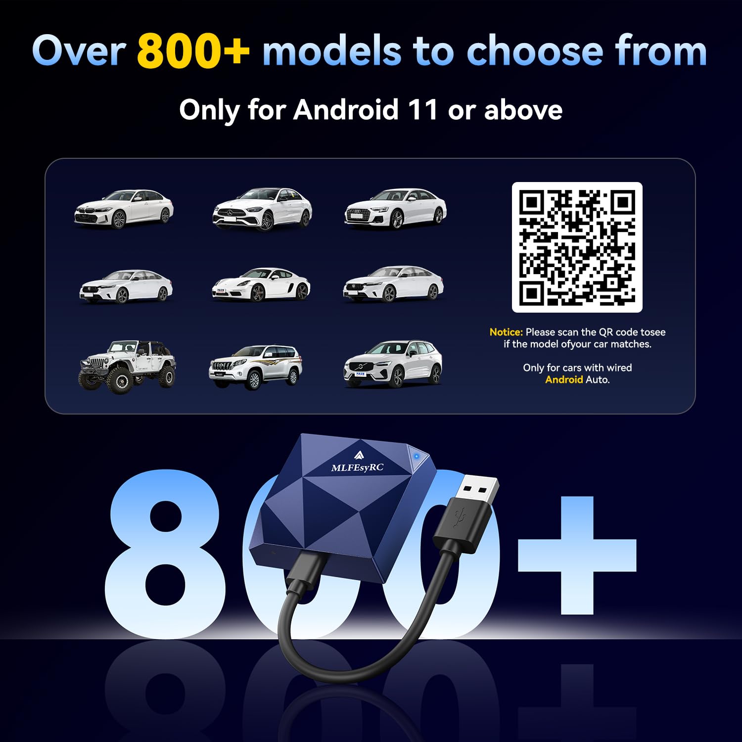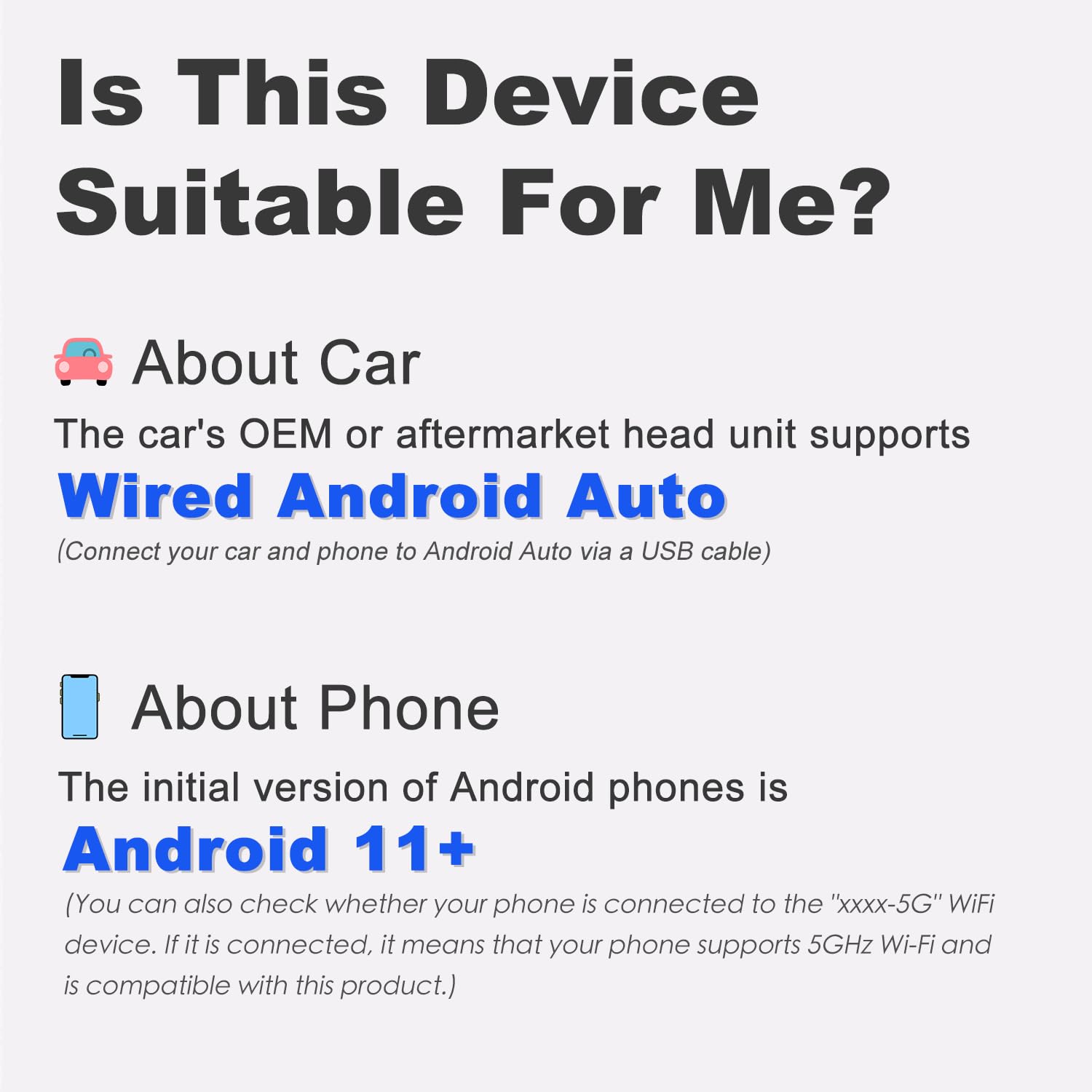 Este adaptador compacto é compatível com mais de 500 veículos que possuem Android Auto com fio de fábrica, além de funcionar com smartphones que rodam Android 11 ou superior. No entanto, não é compatível com modelos específicos como Toyota GR86, RAIZE, Subaru (todos os modelos), ROOMY, Nissan GTR, Peugeot 3008, BMW ou Tesla (todos os modelos).
