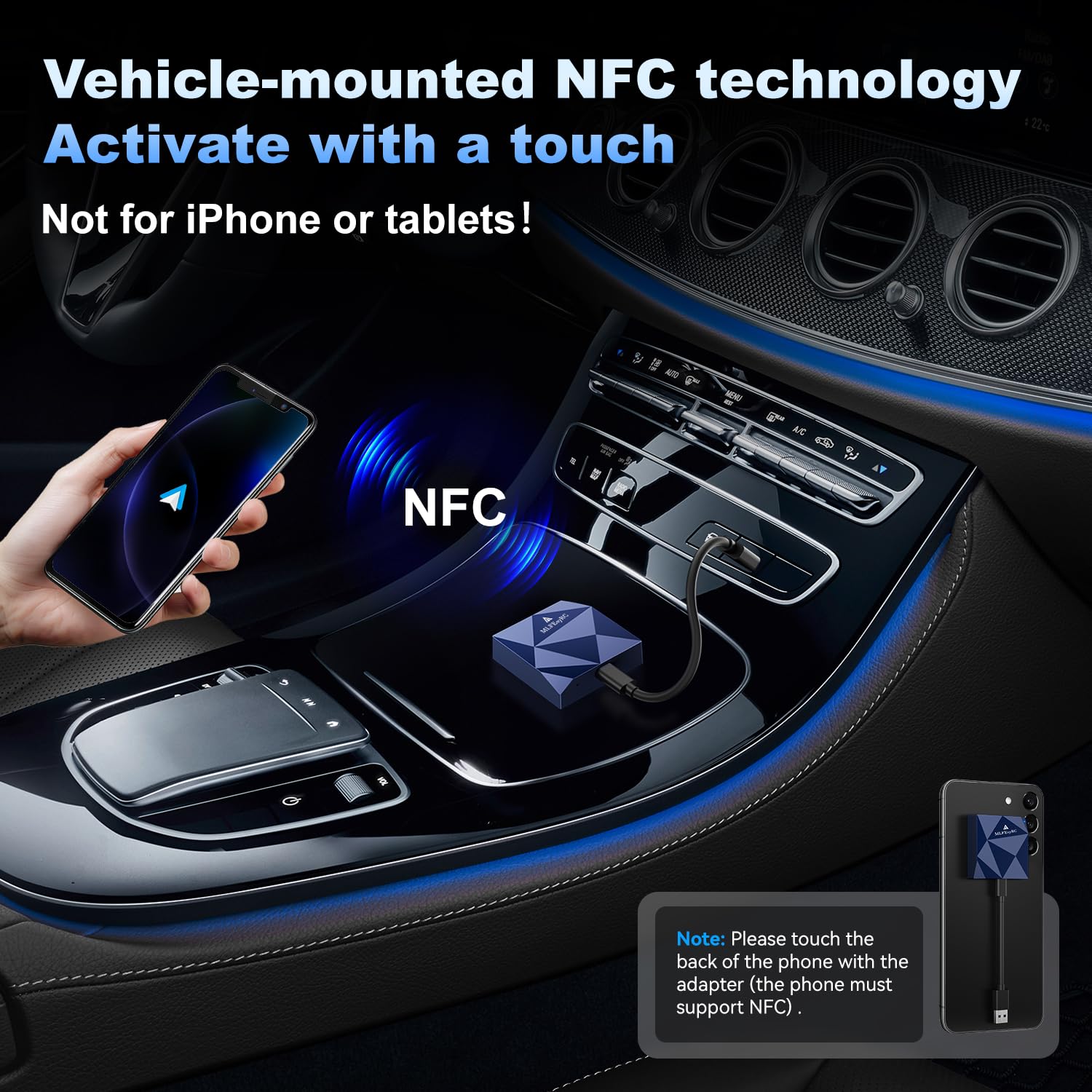 Resposta: Conecte o adaptador à porta USB/Type-C do seu carro, ative o NFC no seu smartphone e aproxime-o do adaptador. Se o seu telefone não suportar NFC, você pode emparelhar manualmente via Bluetooth.