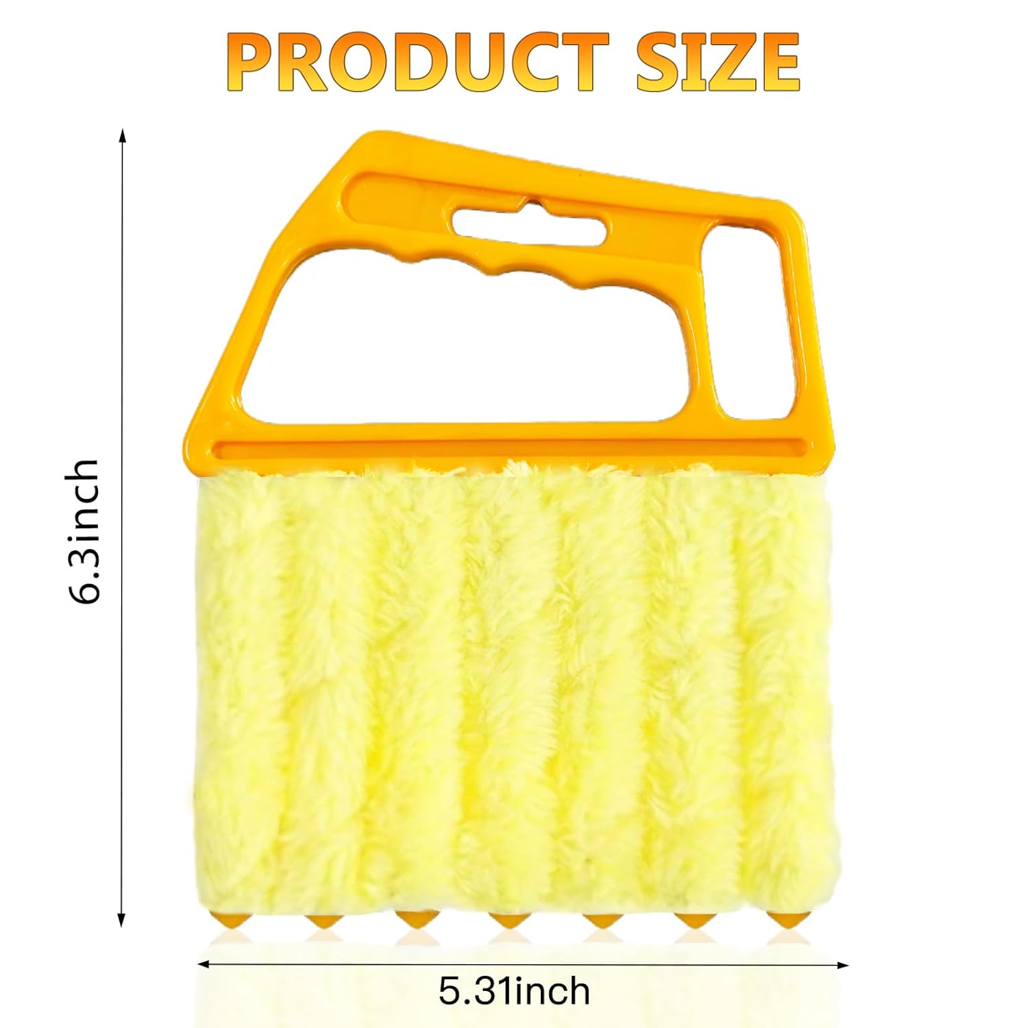 Design Inovador de 7 Dedos: O duster para persianas pode limpar até seis lâminas simultaneamente, com um design em forma de mão que melhora a aderência da escova. Controle facilmente a escova entre as lâminas da persiana segurando o cabo e inserindo-a entre as fendas. A escova se move ao longo das lâminas, atraindo poeira e sujeira de forma eficaz.