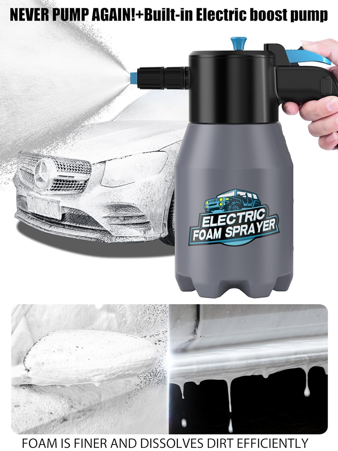🌟 Ação de Espuma Duradoura: Com a tecnologia de impulso elétrico avançada, o spray de espuma para carros entrega uma espuma densa e fina que permanece no lugar por mais tempo, proporcionando mais tempo para quebrar a sujeira mais difícil. O sistema supercarregado atualizado garante que seu carro brilhe como novo após cada lavagem!