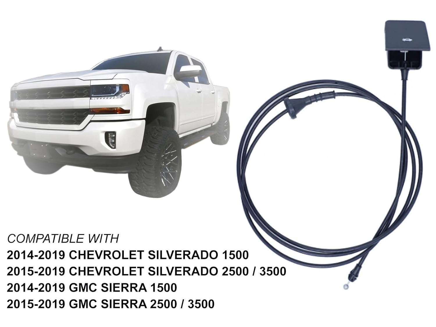 Resposta: O Cabo de Liberação do Capô APA é compatível com modelos Silverado e Sierra de 2014 a 2019, incluindo as versões 1500, 2500 e 3500.