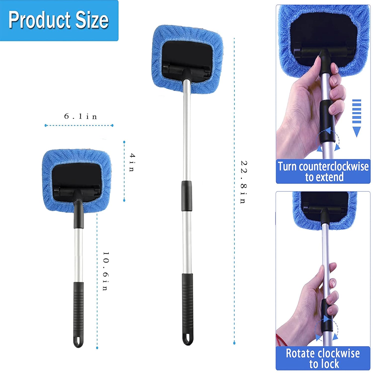 Este limpador multifuncional não se limita apenas ao uso em janelas de carros; ele também é eficaz em superfícies lisas como espelhos e janelas de casa. O kit inclui dois panos de microfibra laváveis, que possuem excelente capacidade de absorção de água, garantindo que não haja fiapos ou resíduos deixados para trás. Além disso, o material do limpador é feito de plástico ABS e tubo de alumínio, tornando-o leve, resistente e à prova de ferrugem.