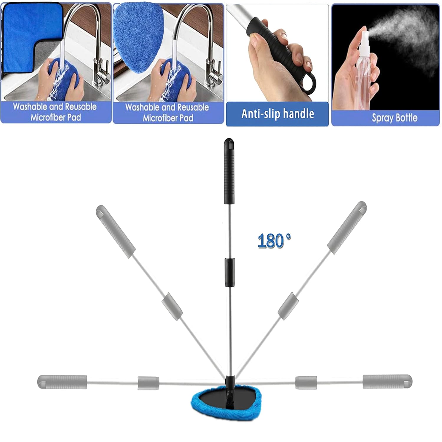 Purchased because the windshield in my work van (2019 Ford Transit 150) has a large windshield in front of a deep dashboard. So, accessibility to the windshield for cleaning was difficult, until I purchased this tool kit. The telescopic handle allows for ease of reaching the entire windshield when extended, and portable storage when collapsed. The low price worried me that it would also be low quality. However, it has better quality than I had expected. Would buy again.