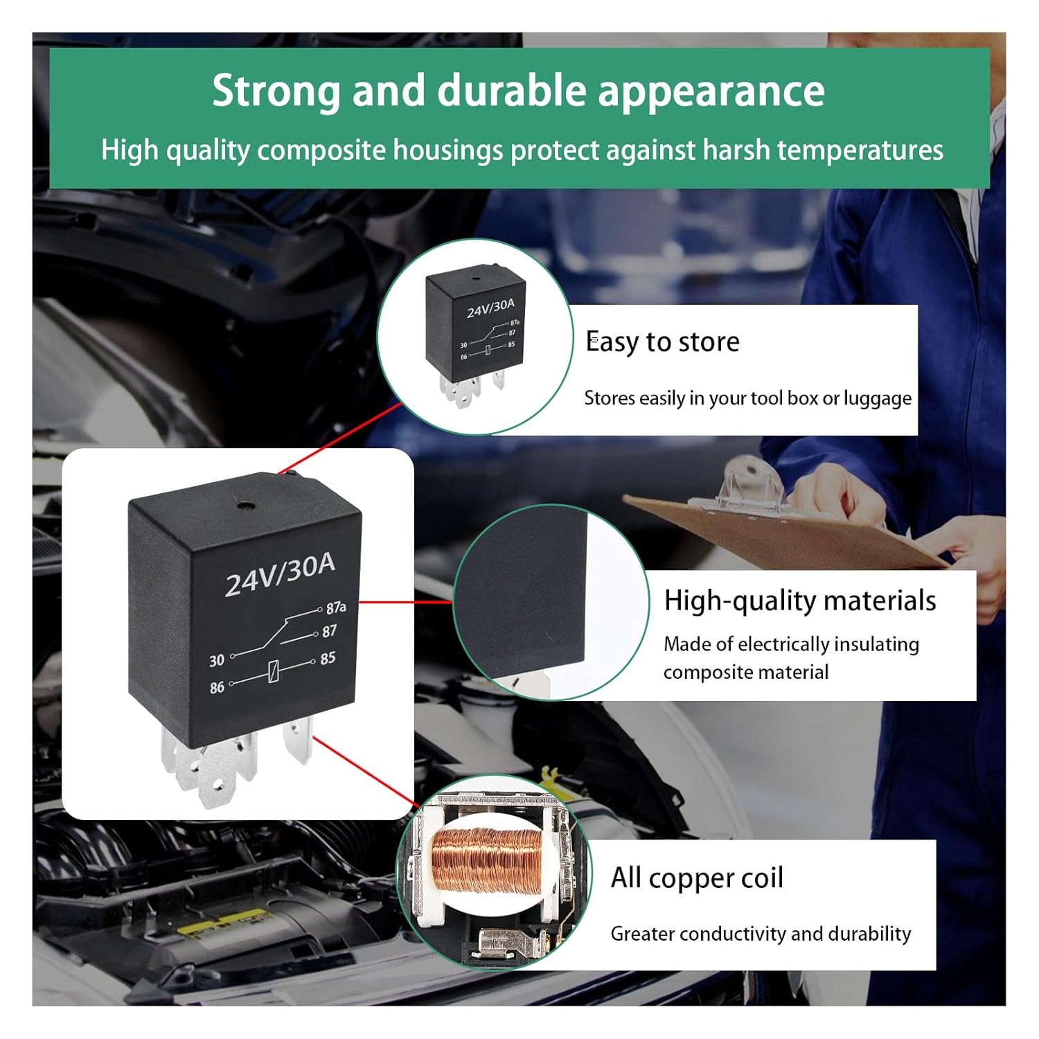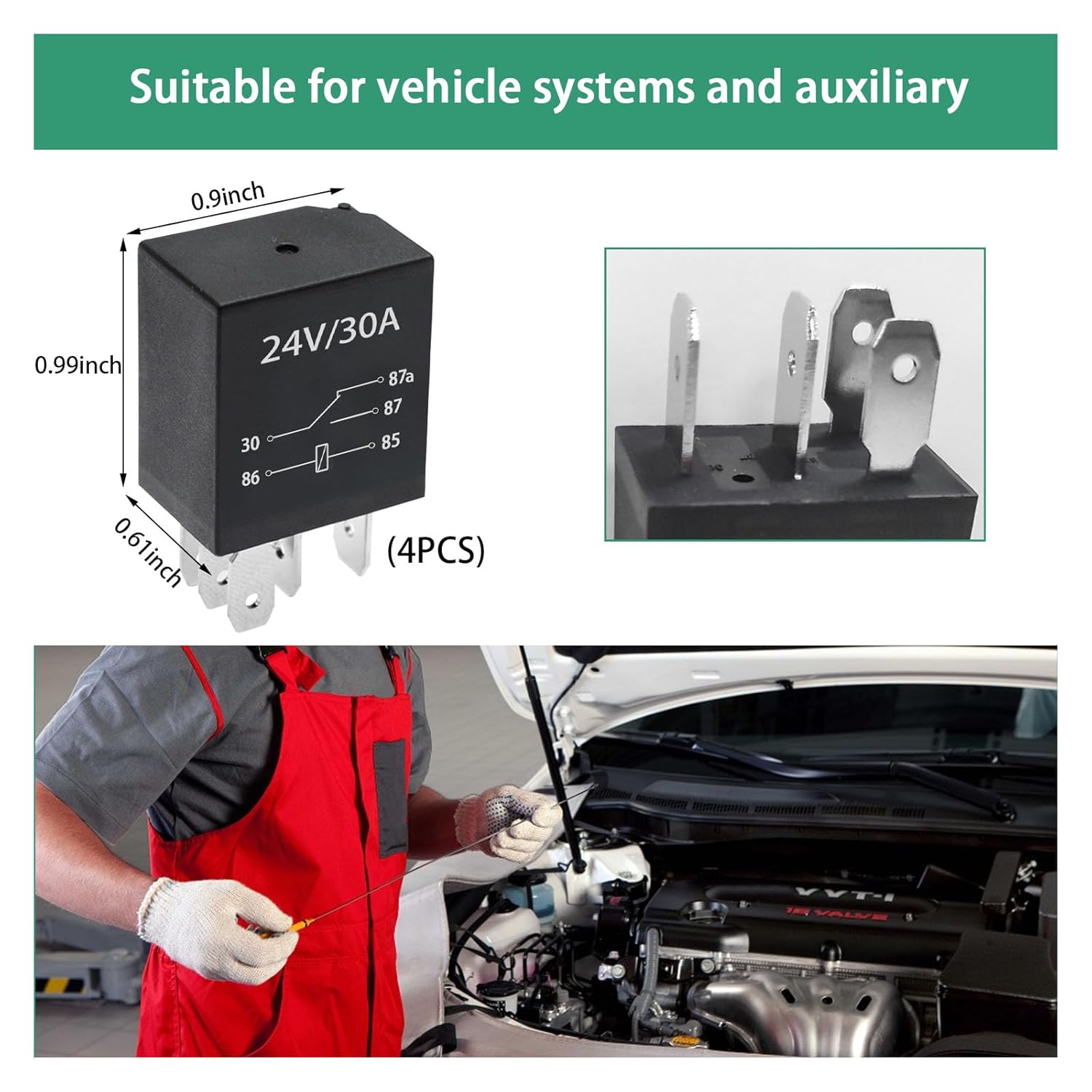 Descrição do Produto: Augeny 4PCS 5 Pin 30A 24V Starter Relay