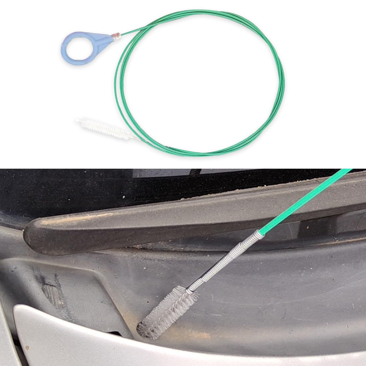 A flexibilidade do design permite que a escova se adapte a tubos longos e estreitos, além de se curvar em ângulos de até 90 graus, tornando-a ideal para drenos de sunroof, buracos de dreno de limpadores de para-brisa e muito mais. O lado da escova é equipado com cerdas de nylon que removem sujeira, folhas e teias de aranha, enquanto o cabo em forma de anel facilita a retirada da escova após o uso, evitando que a ferramenta fique presa.