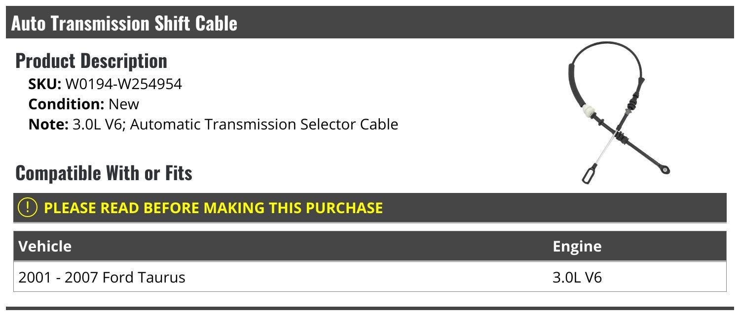 Descrição do Produto: Cabo de Seleção de Transmissão Automática – Compatível com Ford Taurus 2001-2007 3.0L V6