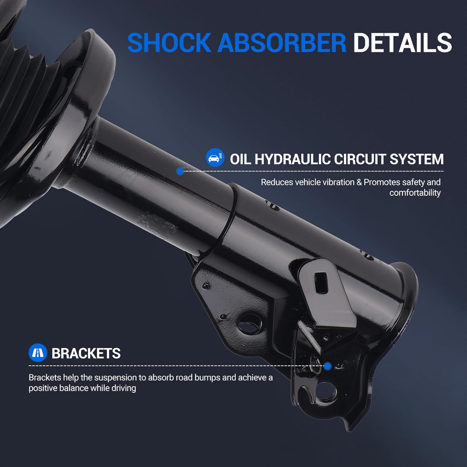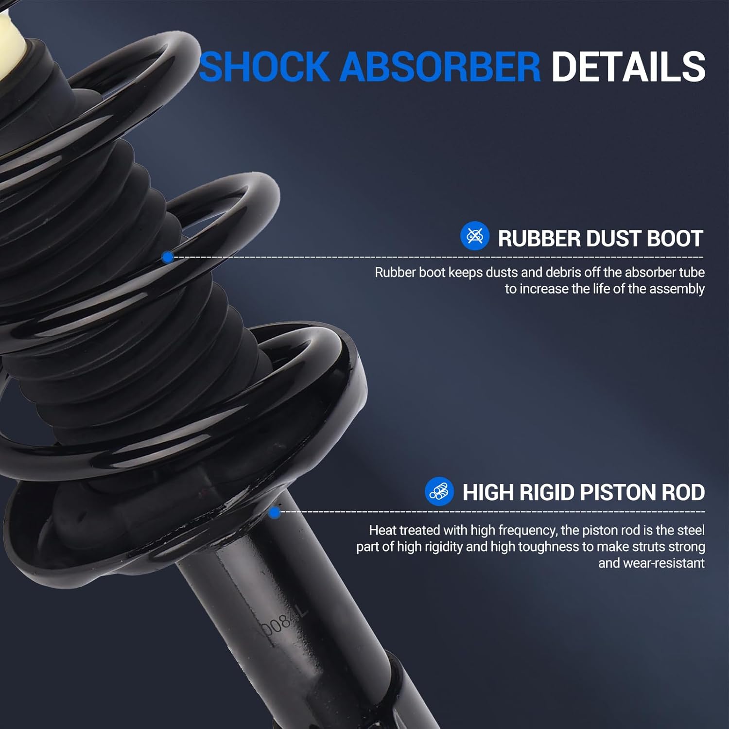 – O conjunto completo de amortecedor e mola do Autoround é fabricado sob rigorosos padrões de qualidade, com proteção contra corrosão aprimorada, proporcionando uma vida útil mais longa em comparação aos amortecedores originais. O corpo em aço de alta resistência assegura maior estabilidade durante a operação. Todos os produtos passam por testes rigorosos de confiabilidade, durabilidade e desempenho, garantindo que você receba apenas o melhor.
