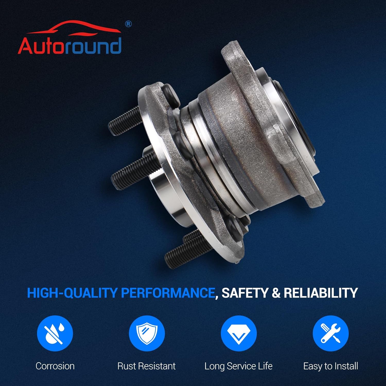 - Alta Qualidade e Durabilidade – O conjunto de cubo de roda Autoround é fabricado com materiais de primeira linha. Seu design selado e características resistentes à poluição aumentam a durabilidade, minimizando ruídos e vibrações. Os parafusos do cubo vêm com um revestimento protetor que ajuda a prevenir ferrugem e corrosão, facilitando a remoção e instalação. Cada componente passa por rigorosos testes para garantir um ajuste perfeito, desempenho ideal e resistência duradoura.