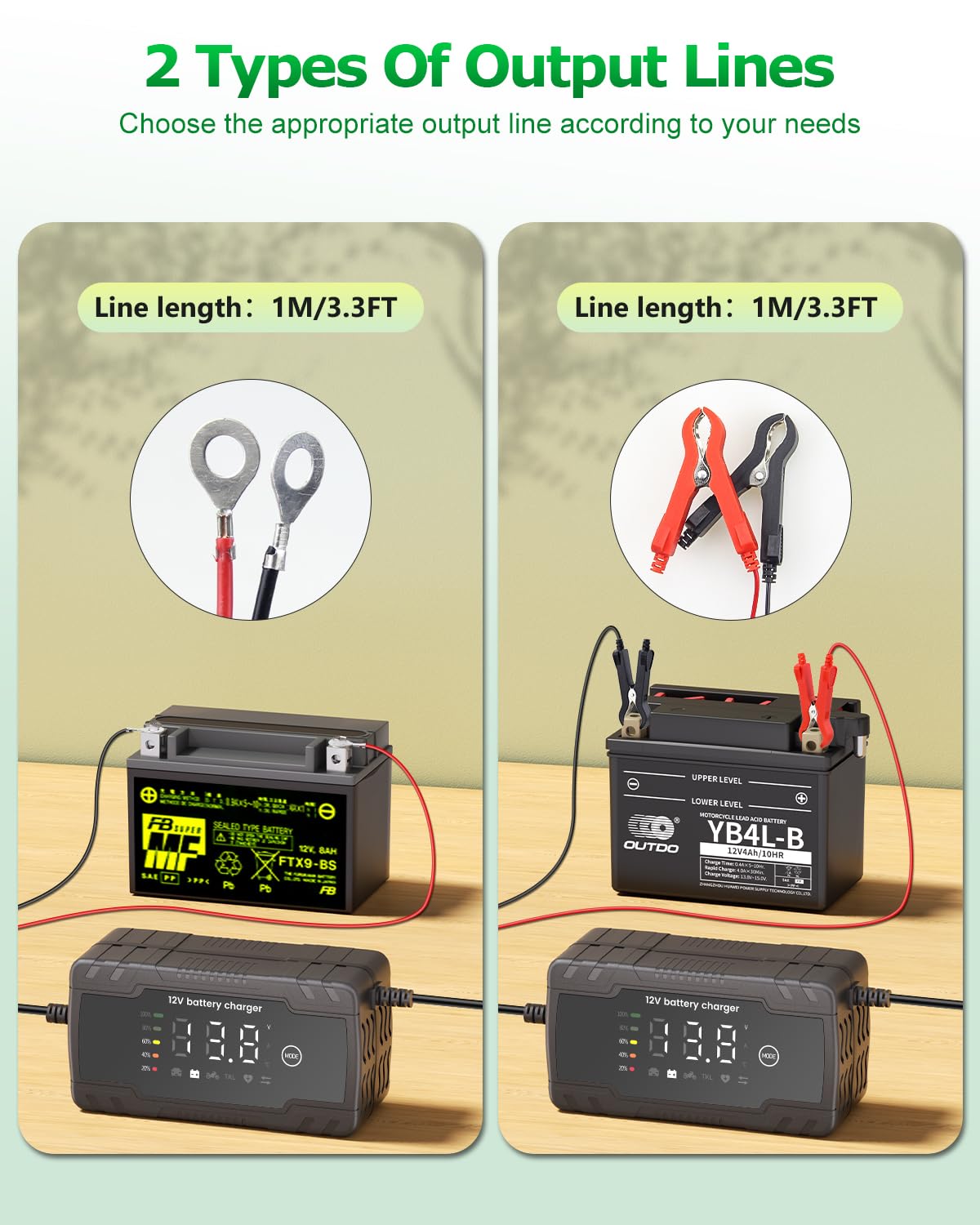 – 【Qualidade Excelente & Serviço Atencioso】 Ao adquirir este produto, você receberá: 1 carregador de bateria 12V e 2 cabos de saída extras. É ideal para carregar e manter carros, motocicletas, scooters, tratores, SUVs, motorhomes, barcos, entre outros. 🤝 Se você tiver alguma dúvida durante o uso do produto, nossa equipe de atendimento ao cliente está à disposição!