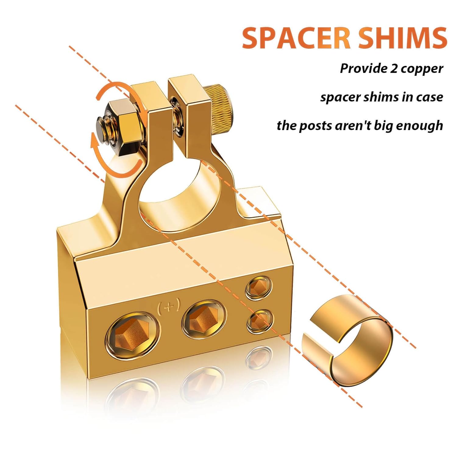 Some people have reviewed that these terminals do not fit. I thought the same thing when I first tried to fit them, but then I realized I made two mistakes: 1) The hole for each terminal contained an unnoticed shim that I needed to remove first, and 2) the positive terminal has a larger hole because the positive battery post is larger, so attach the right terminal to the right post. If your cables terminate with wire lugs, then this product does not accommodate those, so you will have to either choose another product or cut off the wire lugs.