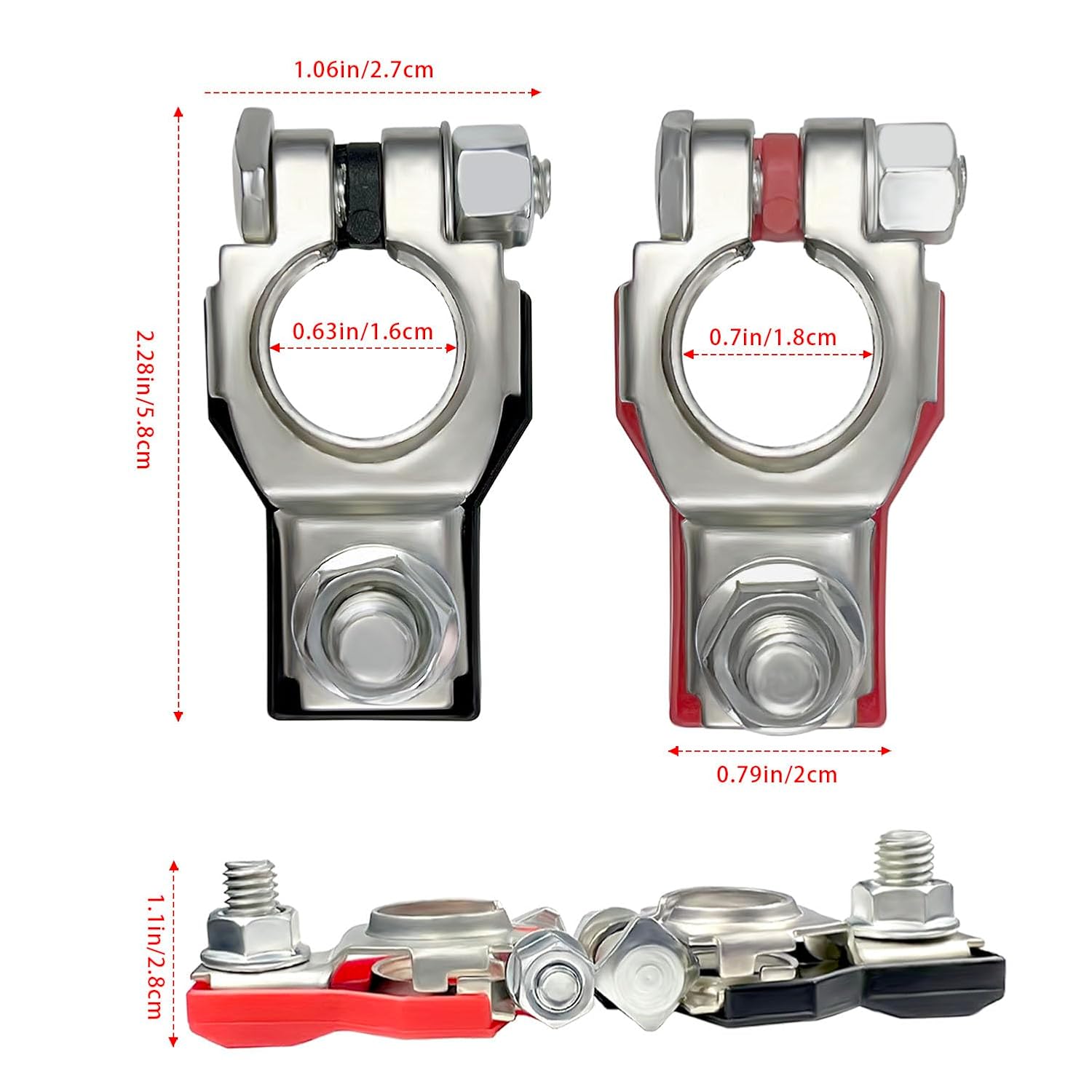 – Material: Conectores de terminais de bateria em zinco revestido de cobre e plástico ABS.