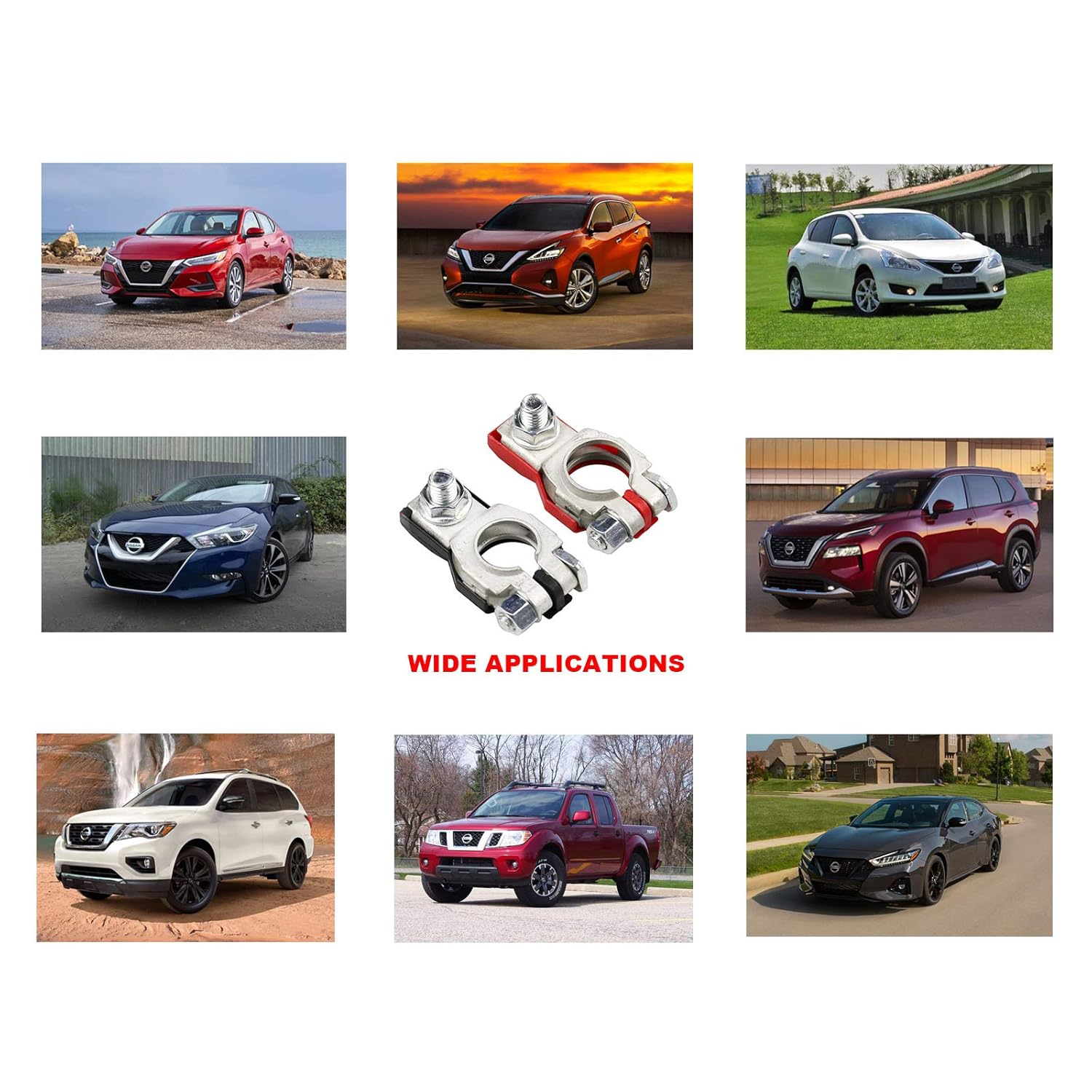 - [Ampla Aplicação]: A montagem do terminal de carro é compatível com modelos Nissan de 1998 até o presente; os conectores de bateria são amplamente compatíveis com Altima, Maxima, Sentra, Murano, Pathfinder, Quest, Titan, Armada, entre outros; é uma boa substituição para o terminal do conector da bateria.