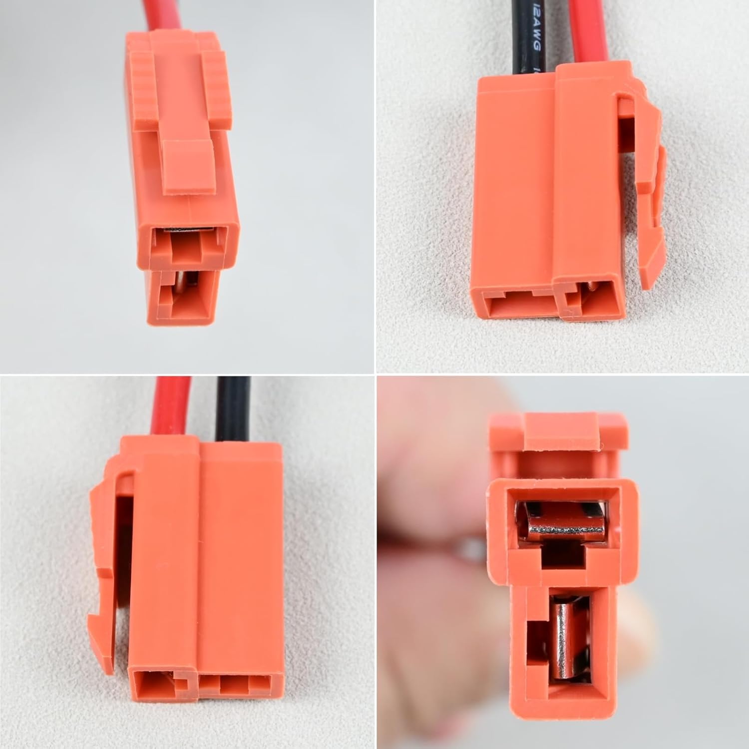 – Compatibilidade: Este conector é compatível com caminhões de brinquedo e ATVs elétricos para crianças que possuem o conector T de 2 pinos, conforme mostrado na imagem.