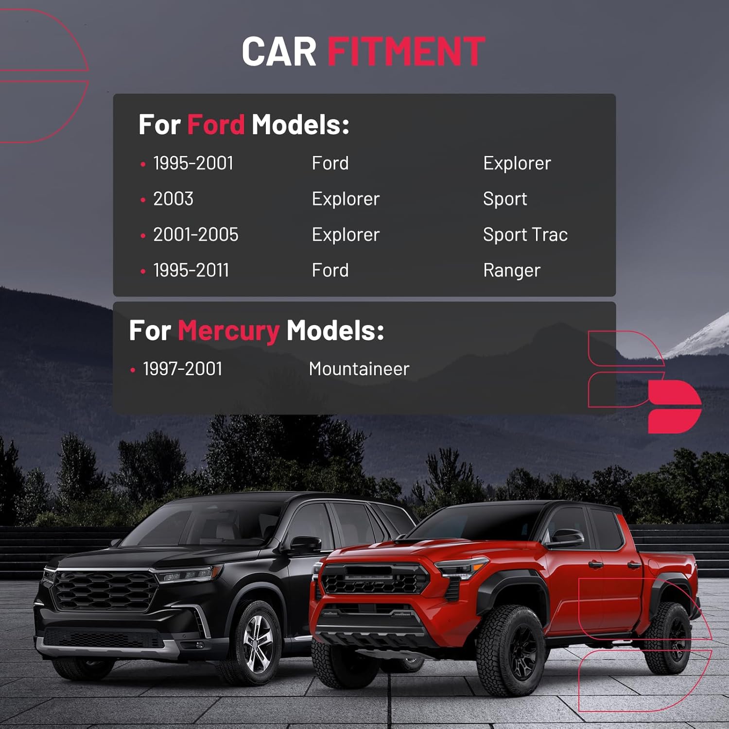 • Informações de Compatibilidade: Compatível com modelos de 1995 a 2001 do Explorer, 2003 do Explorer Sport, 2001 a 2005 do Explorer Sport Trac, 1995 a 2011 do Ranger e 1997 a 2001 do Mercury Mountaineer. Consulte as imagens ou a página de detalhes para informações completas sobre compatibilidade.
