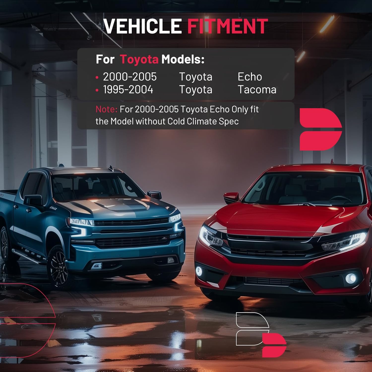 - Informações de Compatibilidade: Este motor de ventilador é compatível com Toyota Echo (2000-2005) e Tacoma (1995-2004). É essencial confirmar a compatibilidade com base no ano, modelo e número da peça original do seu veículo.