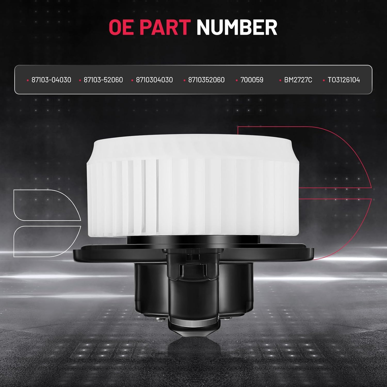 - Números de Peça Compatíveis: Substituição para os números de OE do motor de ventilador: 87103-04030, 87103-52060, 700059, BM2727C, TO3126104.