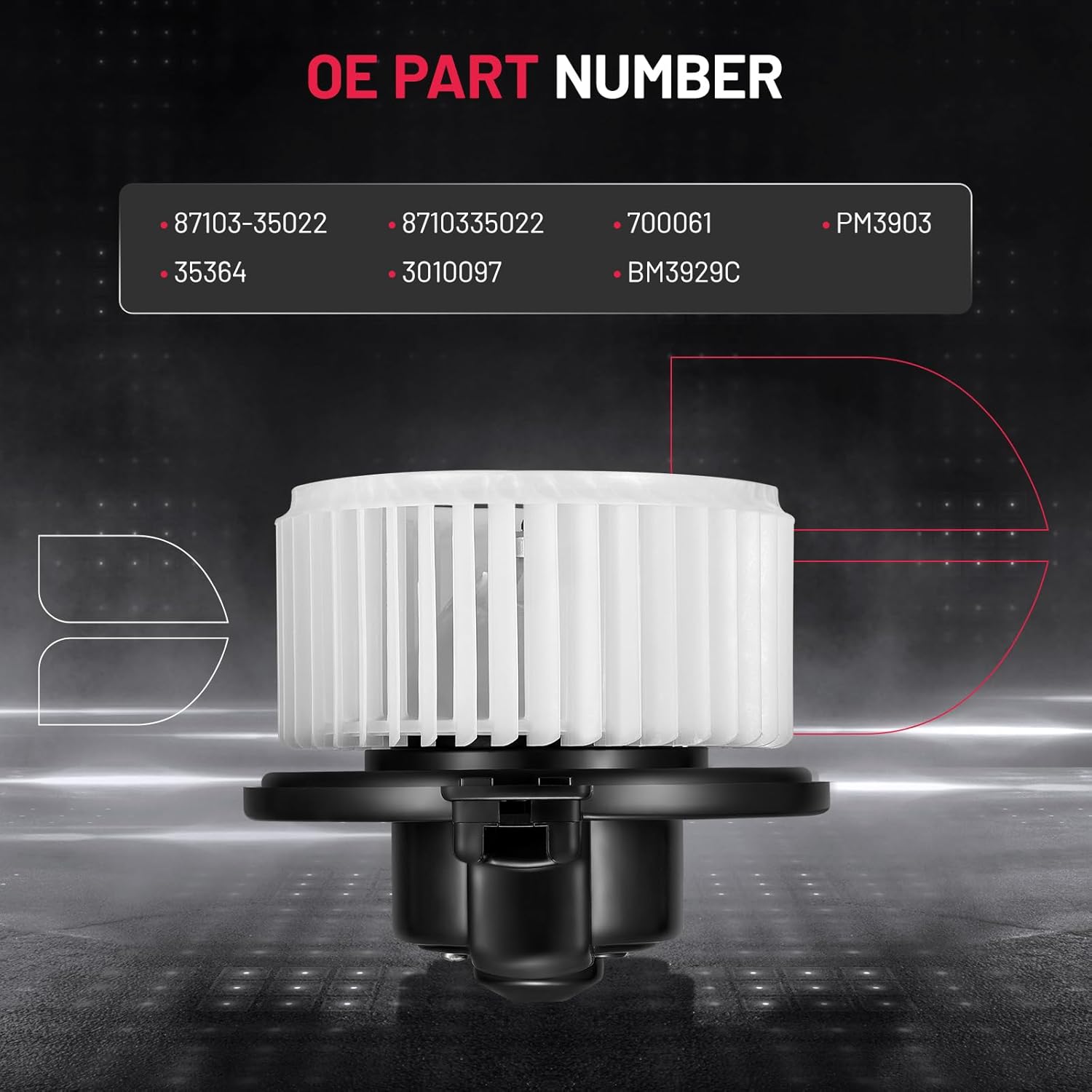 - Números de Peça Compatíveis: Substituição para o número OE do motor de ventilador: 87103-35022, 8710335022, 700061, PM3903, 35364, 3010097, BM3929C.