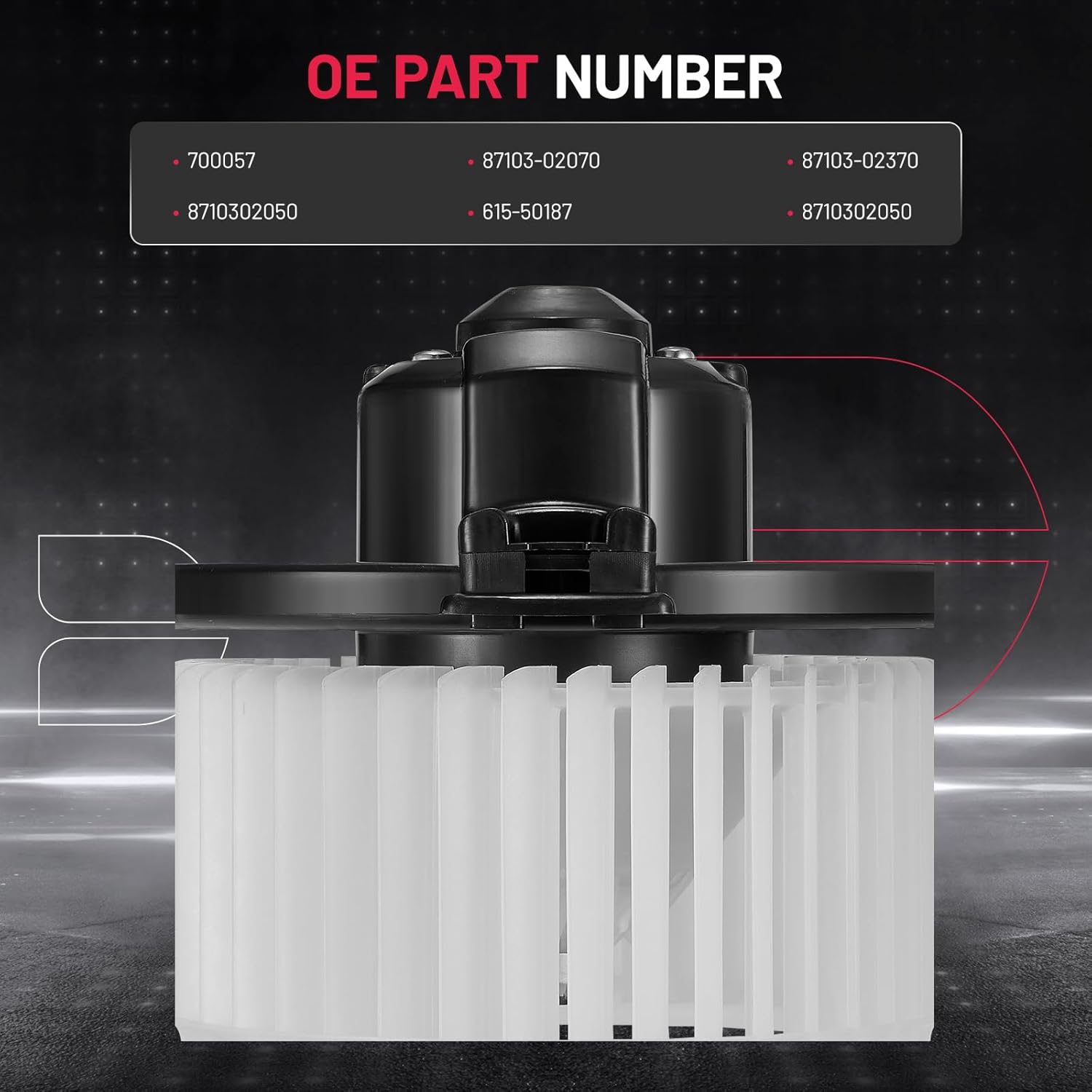 - Números de Peça Compatíveis: Substituição para motores de ventilador com números OE: 700057, 87103-02070, 87103-02370, 8710302050, 615-50187.