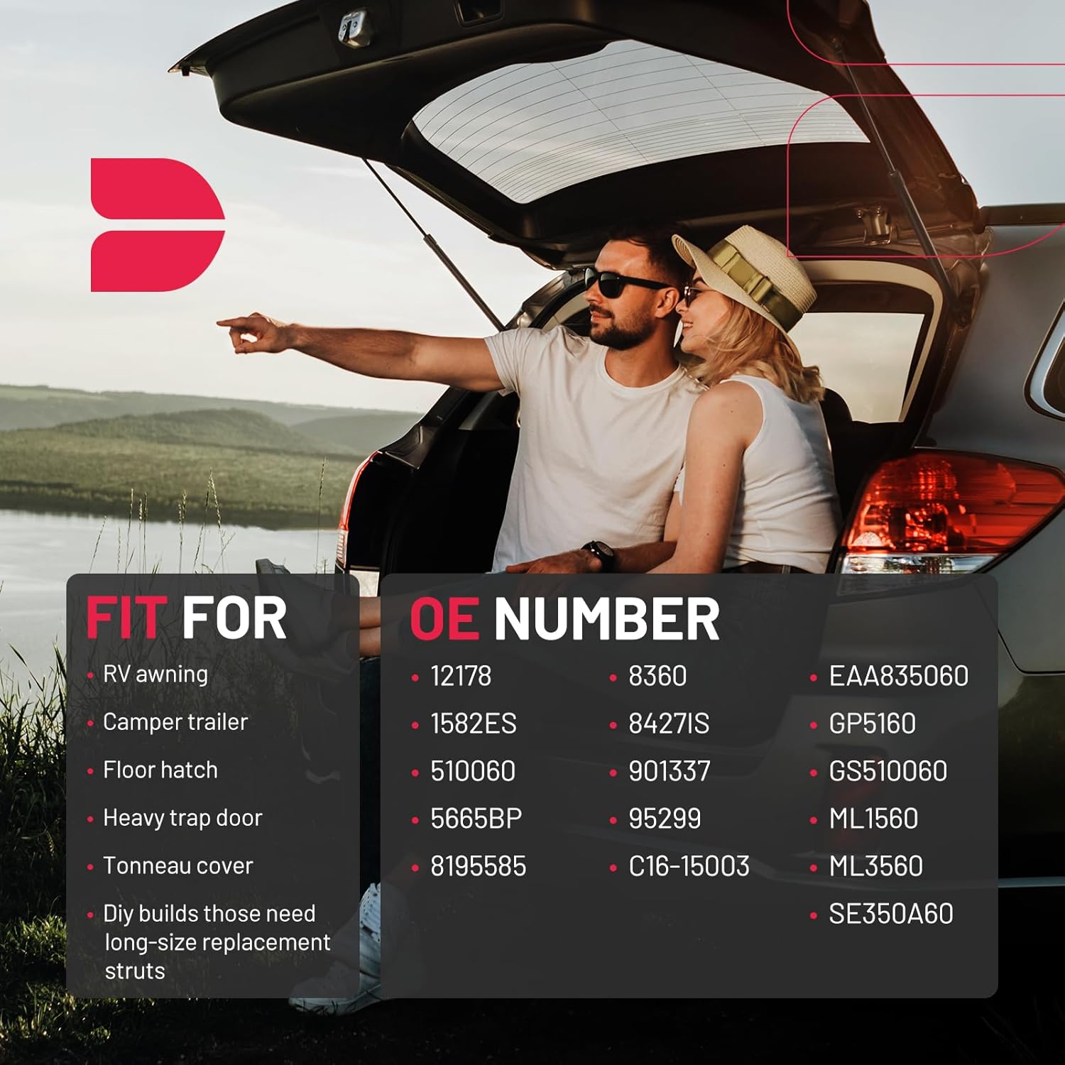 Os Amortecedores a Gás BDFHYK C16-15003 são a solução ideal para quem busca qualidade e eficiência na abertura e fechamento de janelas traseiras de capotas de caminhonete. Com um design universal, esses amortecedores são compatíveis com uma variedade de aplicações, incluindo janelas laterais de camper shell, caixas de ferramentas de caminhonete, tampas de armários, e muito mais. Com um comprimento estendido de 12 polegadas e um comprimento comprimido de 8,1 polegadas, cada amortecedor oferece uma força de 270N (60Lbs), garantindo um suporte robusto e confiável.