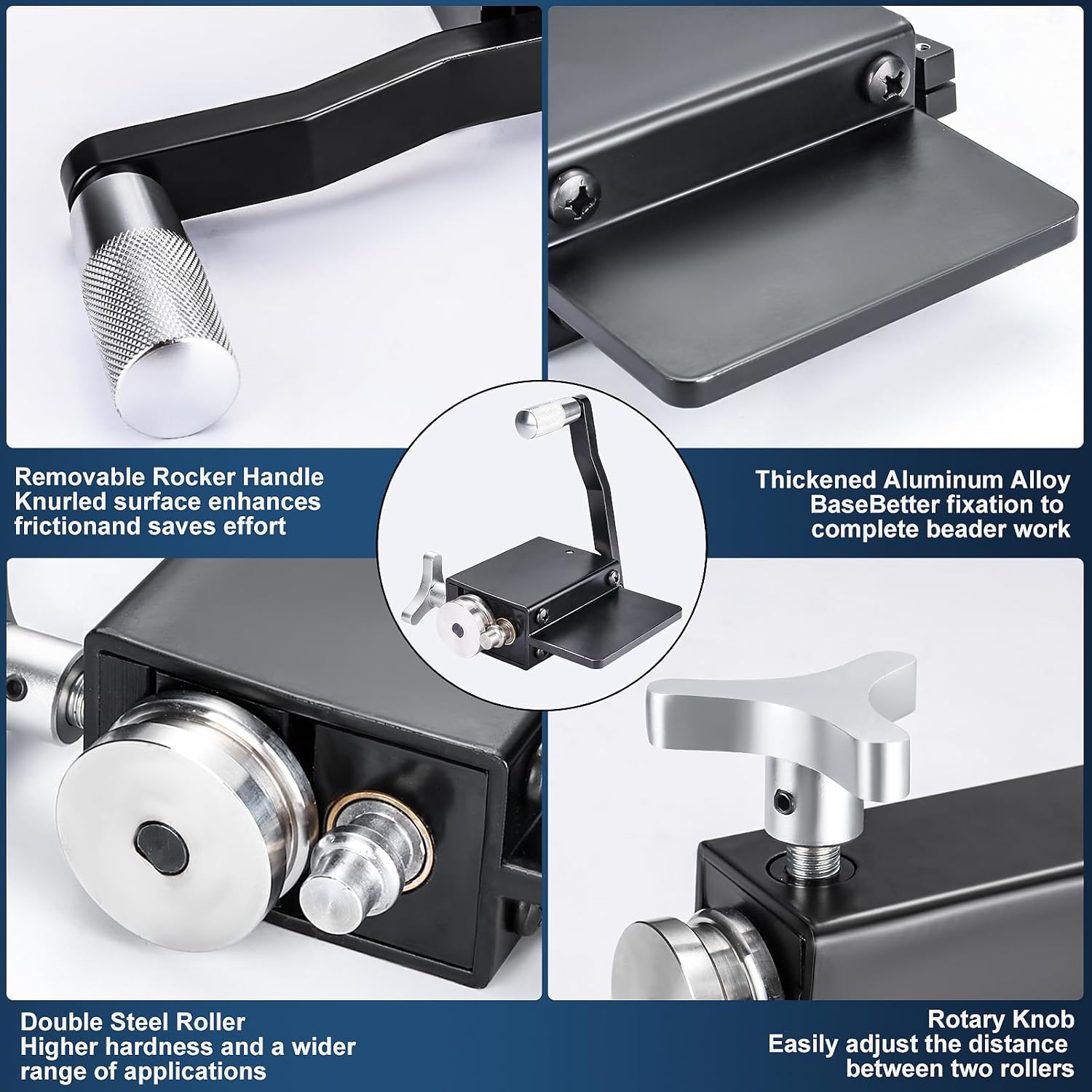 Com um design removível, o Bead Roller facilita o armazenamento e a instalação, permitindo que você mantenha sua oficina organizada e eficiente. A ferramenta é compatível com tubos de parede de cinco-eighths e maiores, tornando-a versátil para uma variedade de projetos. A operação é simples: basta inserir a extremidade do tubo entre os moldes e começar a girar a manivela. É importante ajustar constantemente a distância do molde para obter o efeito desejado no tubo de alumínio.