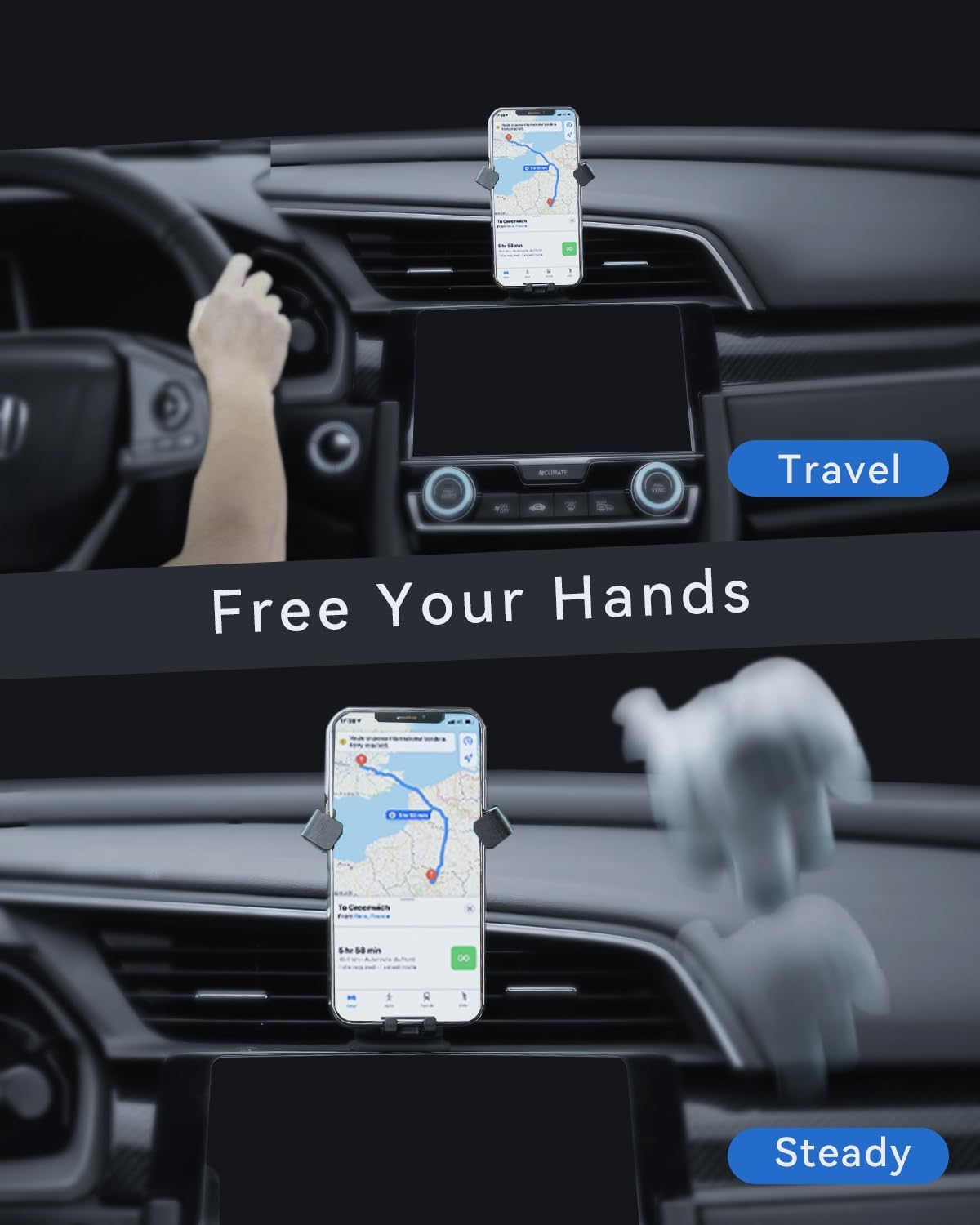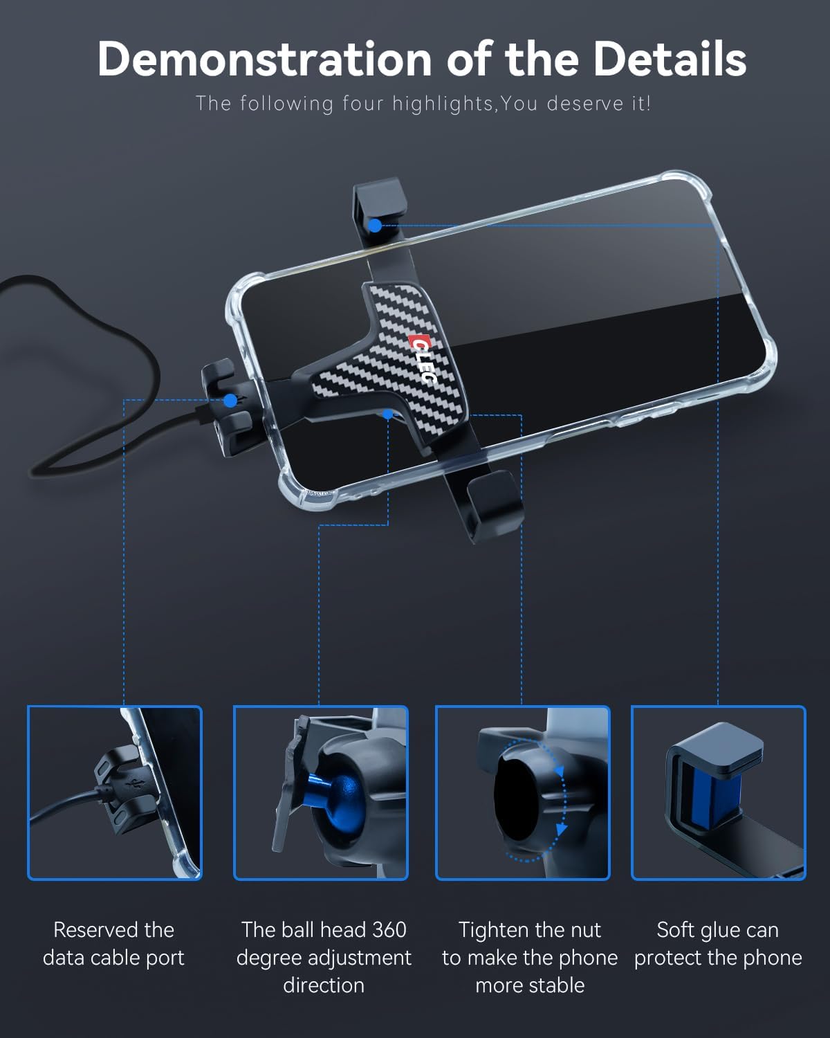 【360 Degree Rotation】 Graças ao sólido conjunto de esfera no centro do suporte, você pode rotacionar seu smartphone em 360 graus, ajustando a tela para a posição que melhor se adapta às suas necessidades. Isso permite que você visualize mapas de navegação, assista a vídeos e até mesmo atenda chamadas de forma segura, garantindo que sua atenção permaneça na estrada.