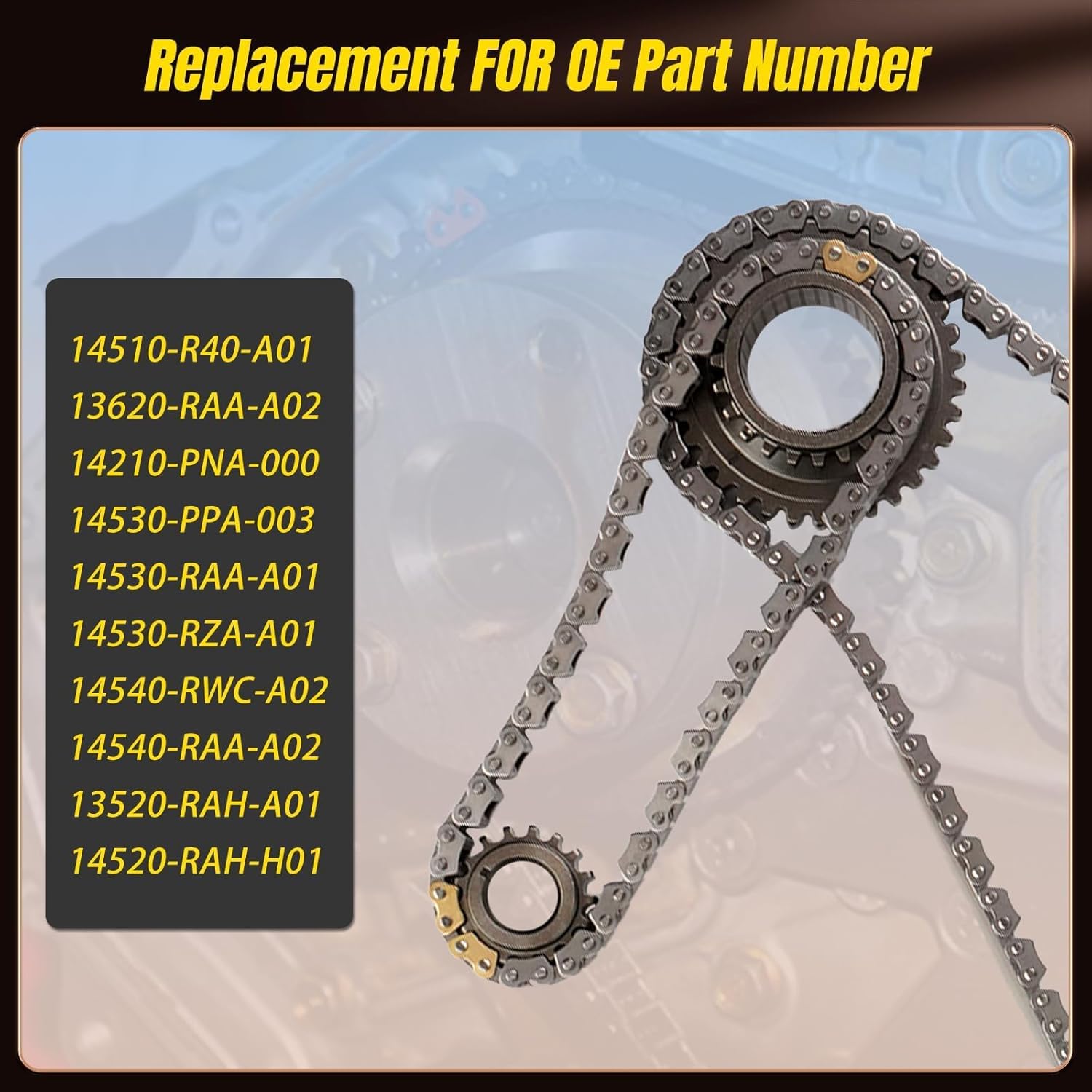- Número de Substituição OE: O nosso conjunto de corrente de distribuição é um substituto direto para os números de peça 14510-R40-A01, 13620-RAA-A02, 14210-PNA-000, 14530-PPA-003, 14530-RAA-A01, 14530-RZA-A01, 14540-RWC-A02, 14540-RAA-A02, 13520-RAH-A01 e 14520-RAH-H01.